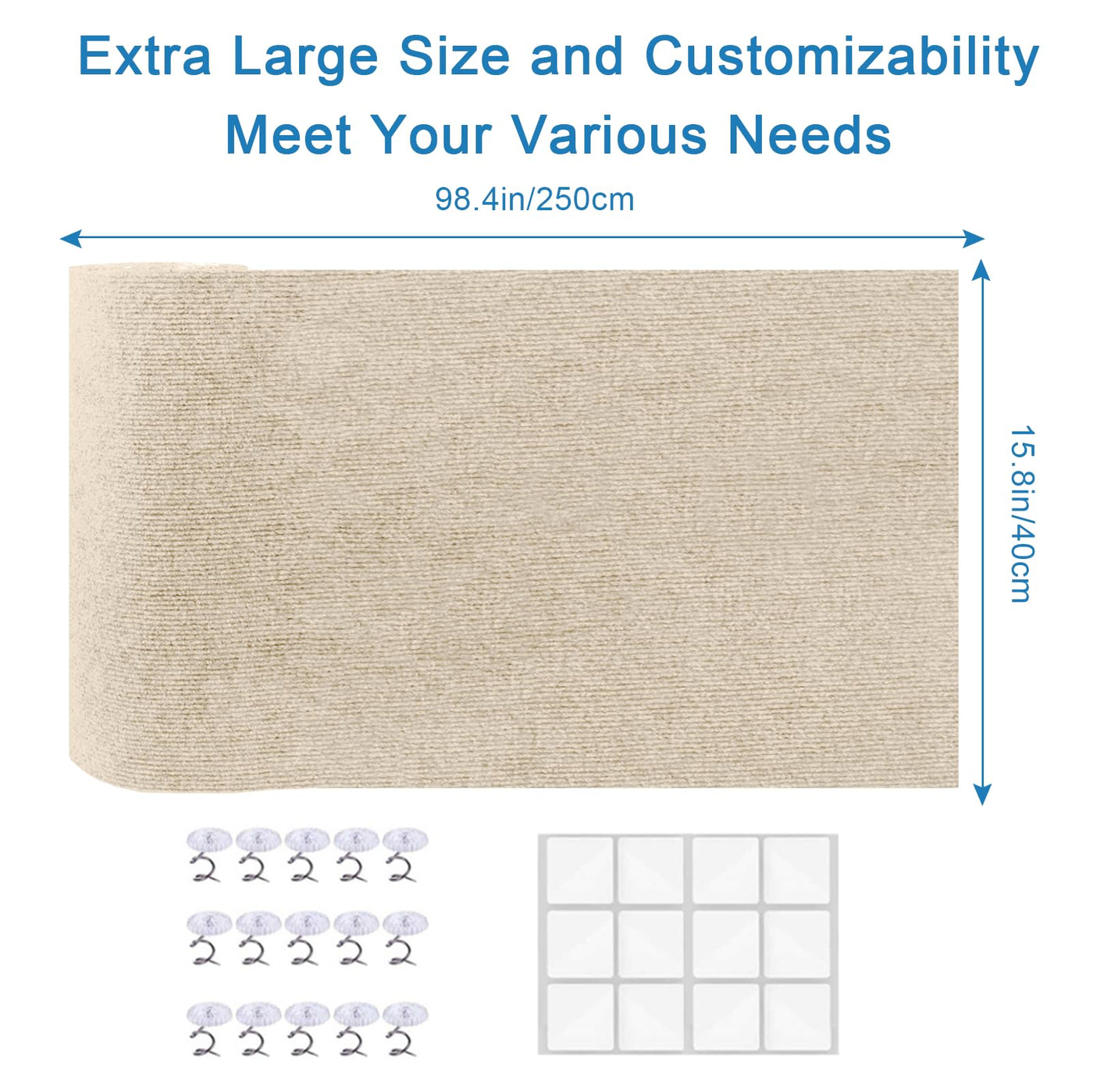 Miuzmore Cat Carpet, 98.4'' X 15.8'' Trimmable Replacement Scratching Mat,Self-Adhesive Scratch Mat - Cat Scratch Furniture Prot