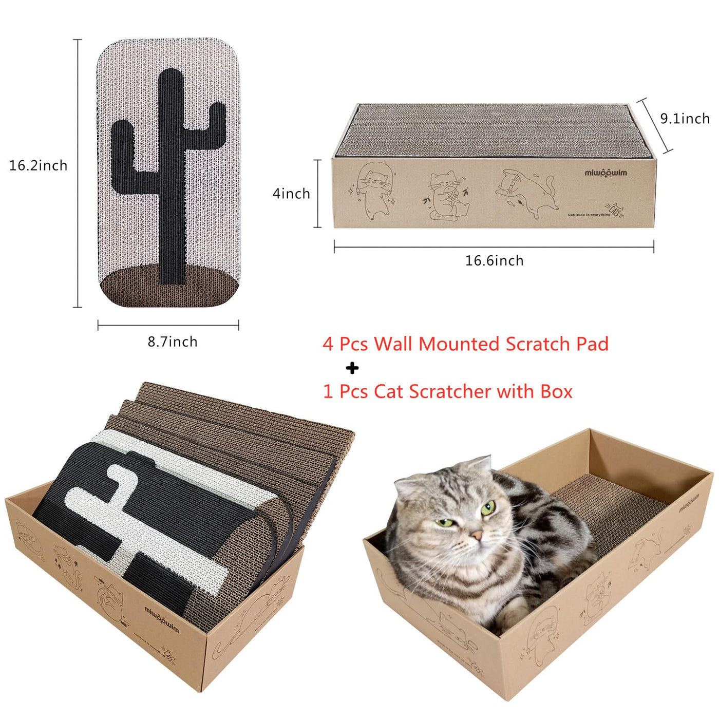 4 Pcs Cat Scratcher Wall Mounted Scratch Pad +1 Pcs Cat Scratcher Box, As Opposed To Traditional Cat Scratching Posts, Which Tend To Be Bulky And Take Up A Lot Of Floor Space, The Wall-Mounted Cat Scratcher Is Sleek And Elegant And Will Barely Interfere With Your Home Decor. It Will Most Likely Become Your Cats Favorite Scratching Spot, So You Can Breathe A Huge Sigh Of Relief. Youll Finally Have Intact-Looking Furniture And Curtains Again. Thats Quite A Small Price To Pay For A Little Wall Space Sacrificed, Isnt It? And Did We Mention Its Eco-Friendly As Well? The Materials We Use Are Non-Toxic And Free Of Formaldehyde & Vocs, So Its Completely Safe For You And Your Cat!
