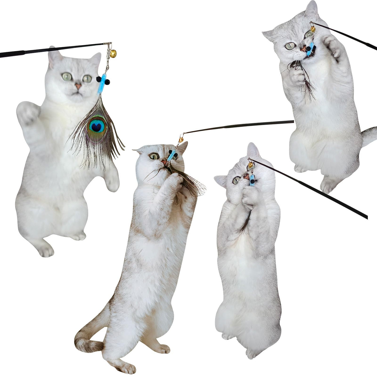 Miwoowim Interactive Cat Toys - 10 Pcs Cat Retractable Wand Toy And Feather Toys Refills, Enrichment Toys For Indoor Cats,Kitty