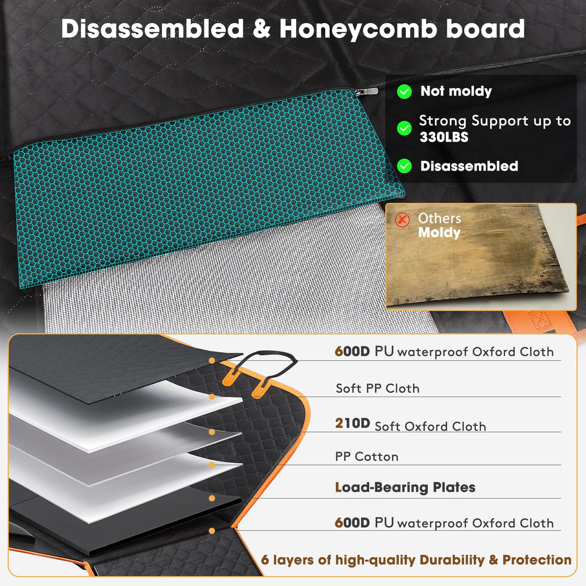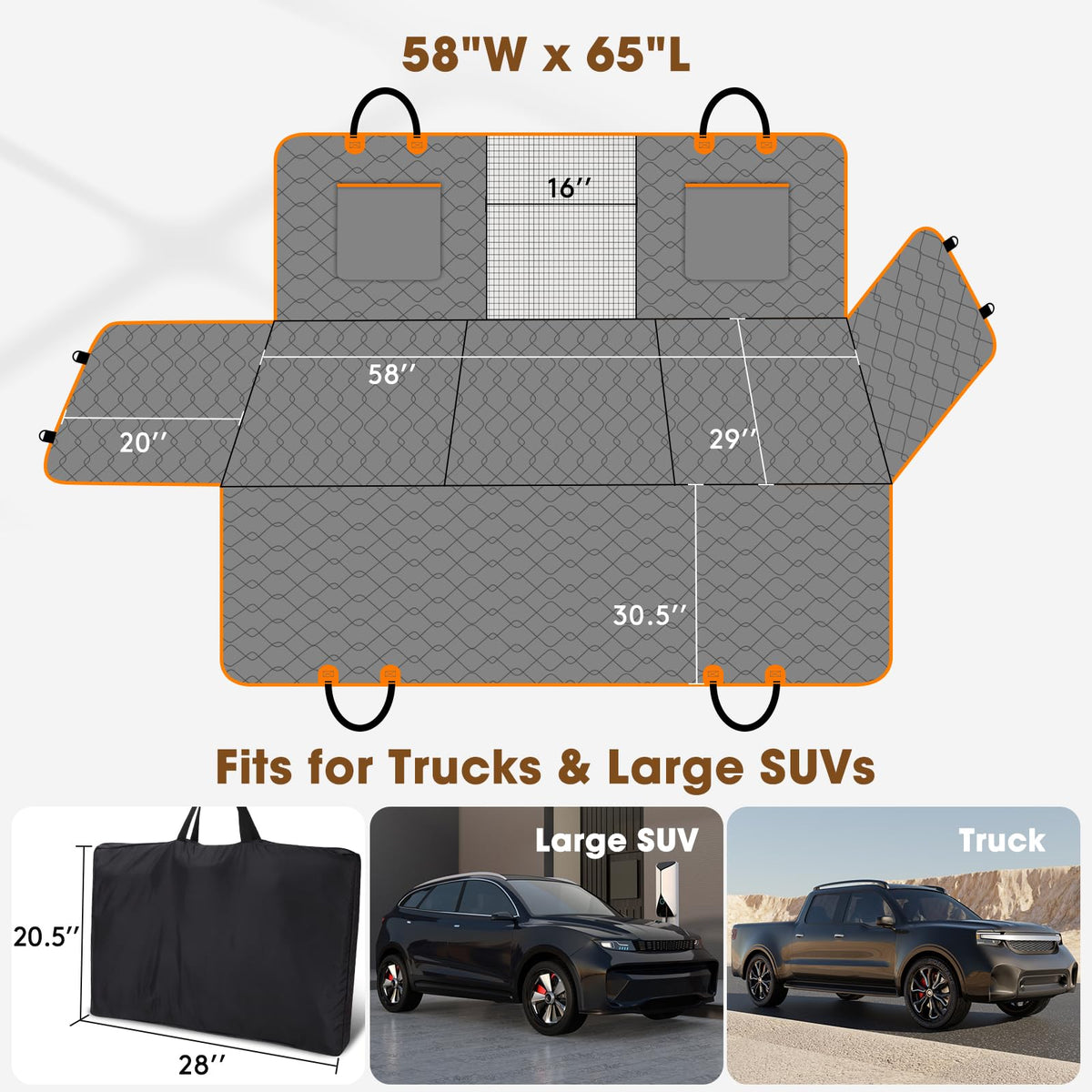 MIXJOY Dog Car Seat Covers --- Give you peace of mind to share a great journey with your puppy! Product Features Waterproof: Enhanced waterproof 6 layered fabric protects your car seat covers waterproof against liquid and spills. Scratchproof: Each layer has increased thickness and is 100% sure that your car will not be scratched. Anti-slip: Top straps with buckles, seat anchors and rubber back keeps the cover securely in place. Convenience: Easy on and off to make you can hit the road together with your dog in no time. Protection: A full range of safety measures ensure that your pet will not be harmed during emergency braking and turning. Comfortable: Quilted structure, thicker than average, makes the cover comfortable; happier than ever. High-density Hexagonal Football Pattern:Less likely to stick to pet hair and easier to clean. Installation Tutorials 1.Slide the 2 seat anchors into the crease between seat back and the seat bottom. 2.Put 4 straps over corresponding headrests. Adjust the height to suit the best. 3.Put the side zipper on and hook it on the safety handle above the door. Package Content 1* Dog Car Seat Cover 1* Seat Belt 1* Instruction Manual 1* Storage Drawstring Bag Guarantee We make good products and services, please enjoy every journey with your family. For questions regarding your MIXJOY seat cover products, please feel free to contact our customer service.