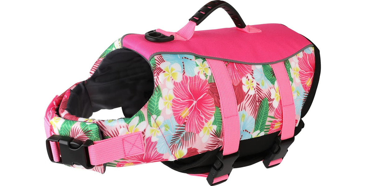 HAWAIIAN STYLE: Mklhgty hawaiian dog life jacket adopts a fashionable retro Hawaiian style adding elements such as flowers sailboats leaves etc. which are more cute and cool and make your pets more attractive and the focus of swimming pool beach