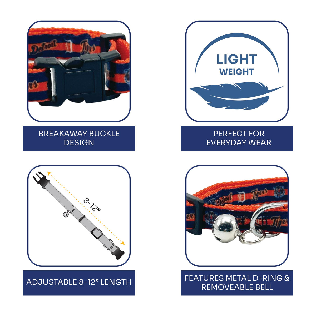 Mlb Cat Collar Detroit Tigers Satin Cat Collar Baseball Team Collar For Dogs & Cats. A Shiny & Colorful Cat Collar With Ringing