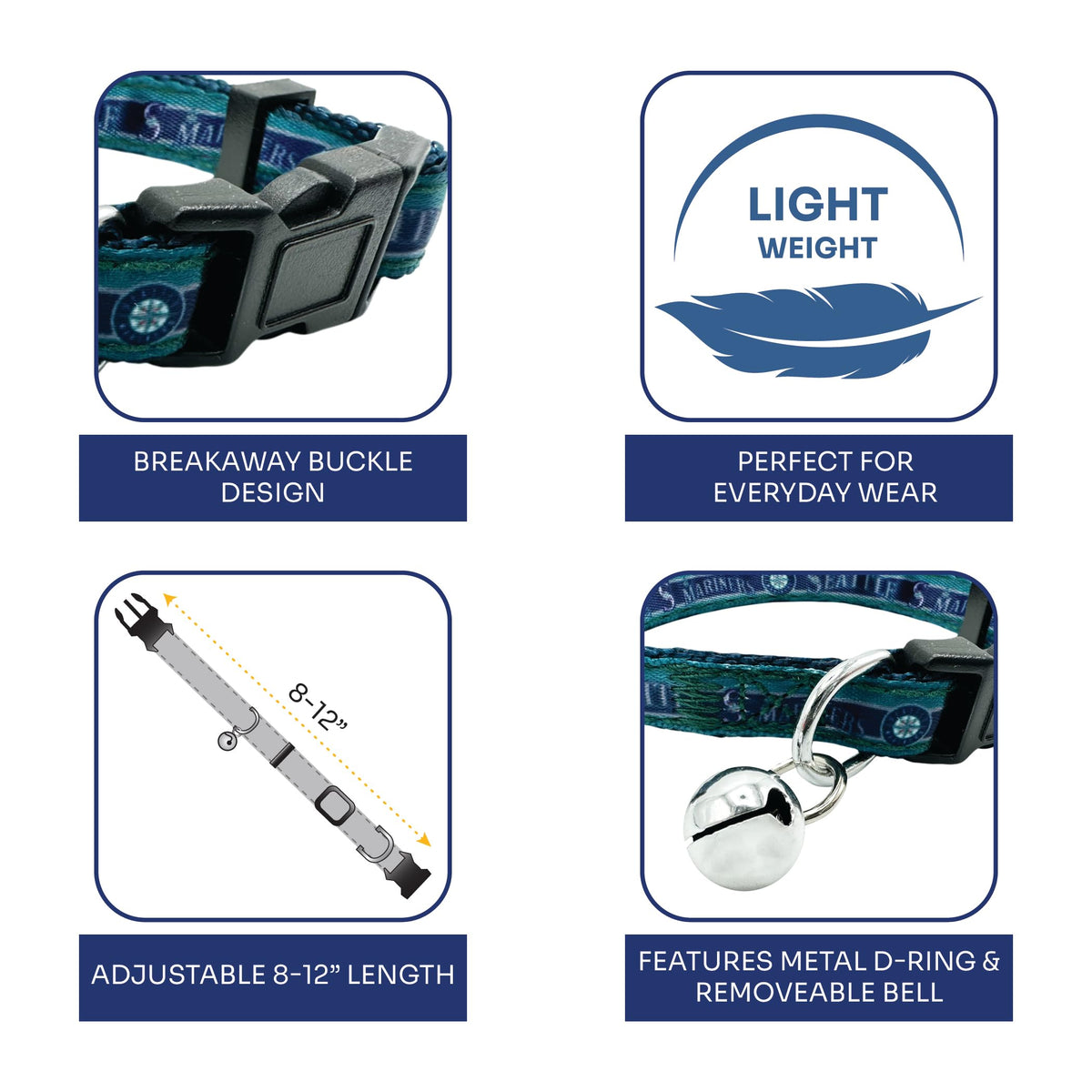 Mlb Cat Collar Seattle Mariners Satin Cat Collar Baseball Team Collar For Dogs & Cats. A Shiny & Colorful Cat Collar With Ringin