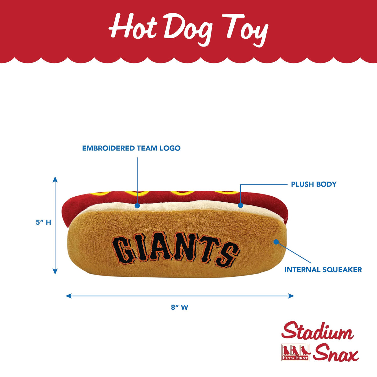 The New Hot-Dog Plush Toy For Dogs & Cats With Your Favorite Mlb Baseball Team Name & Logo Licensed By The Sports League With Inner Squeaker Is Finally Available!When You'Re At The Game/Stadium Eating Your Hot Dog, Your Pet Can Now Too!While You'Ve Probably Bought Some Dog Toys Before Like Plush Dog Toys Or Rubber Dog Toys Or Nylon Dog Toys Etc..., Some Are Better Than Others... But There Aren'T Many For Those Sports Fans - Well, Now They Are Available! Thanks To Pets First! Yup! Our #1 Squeak Plush Hot Toys For Dogs Or Cats Or Kids Feature The Team Logo Of Your Favorite Team In Vibrant Team Colors!Measurements:8'' Length X 5'' Width X 3'' Height, The Perfect Size For Small Dogs, Small Cats, Medium Dogs, Medium Cats, Large Dogs Or Large Cats!Usage:Exercise Is Crucial To Having A Healthy Dog, Healthy Cat, Healthy Pet, So Buy These Plush Snack Toys! They Are Safe & Fun! Great For Training And Chasing!Perfect As A Gift Too!Works Well For Dogs As Well As For Their Owners!Collect Them All:Why Not Get The Whole Mlb Stadium Snax Collection! Your Pet Will Love These Treats While Watching A Game Or Just For Fun!Our Licensed Pet Toys Come In Most Mlb Teams:Atlanta Braves, Boston Red Sox, Chicago Cubs, Chicago White Sox, Cleveland Guardians, Houston Astros, Los Angeles Dodgers, Milwaukee Brewers, New York Yankees, Philadelphia Phillies, Pittsburgh Pirates, Saint Louis Cardinals, San Diego Padres, San Francisco Giants, Seattle Mariners, Toronto Blue Jays, And Washington Nationals.Need More Pet Gear? Love Matching?Hey, While You Buy The Best Dog Toy For Your Pet Don'T Forget To Buy Our Matching Mlb Pet Jersey So That You Can Be Ready For The Next Win!Checkout Our Pets First Mlb Licensed Pet Gear: Mlb Pet Tee Shirts, Mlb Pet Sweaters, Mlb Pet Hoodies, Mlb Pet Dugout Jackets, Mlb Pet Leashes, Mlb Pet Harnesses, Mlb Pet Bandanas, Mlb Pet Toys, Mlb Pet Reversible Bandanas, Mlb Pet Id Tags, Mlb Pet Camouflage Jerseys, Mlb Pet Beds, Mlb Pet Pillows, Mlb Pet Car Seat Covers, Mlb Pet Pink Jerseys, Mlb Cat Collars, Mlb Cat Scratcher Toys... Buy The Whole Mlb Pet Collection Made By Pets First & You Are A Real Sports Fan!Licenses: Pets First Has Secured Licenses With Major League Baseball Mlb, Major League Baseball Players Association Mlbpa, Football, Football Players, National Hockey League Nhl, National Basketball Association Nba, Realtree, Laur Diy, Mls, John Deere & Over 50 Of The Top Colleges In The Country Ncaa.Specialized In Training Pads Too: As Our Customer'S Relationship Continues To Flourish, We'Ve Introduced The Best Training Pee Wee Dog Pads On The Market; Checkout The Pets First Premium Training Pads On Amazon.When You Are A Pet Owner, You Are Part Of The Pets First Family At Pets First We'Ll Always Have You Covered!Wanna Feel Like Your At The Stadium Watching Your Favorite Baseball Players While Drinking A Beer? So Does Your Pet!