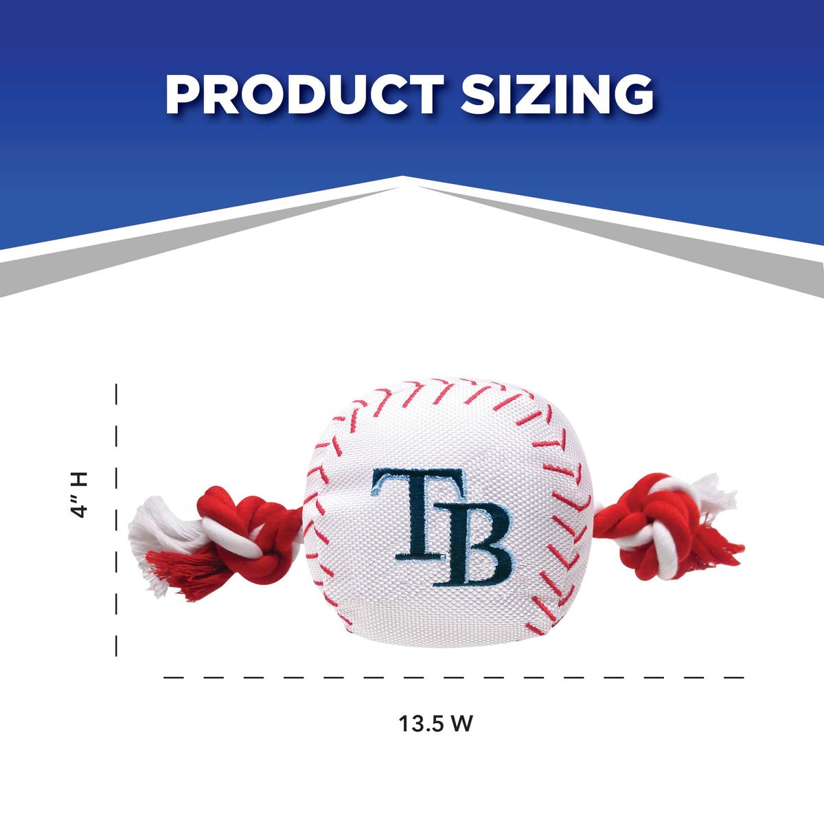 Mlb Tampa Bay Rays Baseball Rope Toy For Dogs & Cats. Tough Nylon, Sporty Baseball Design, Heavy-Duty Ropes With Inner Squeaker
