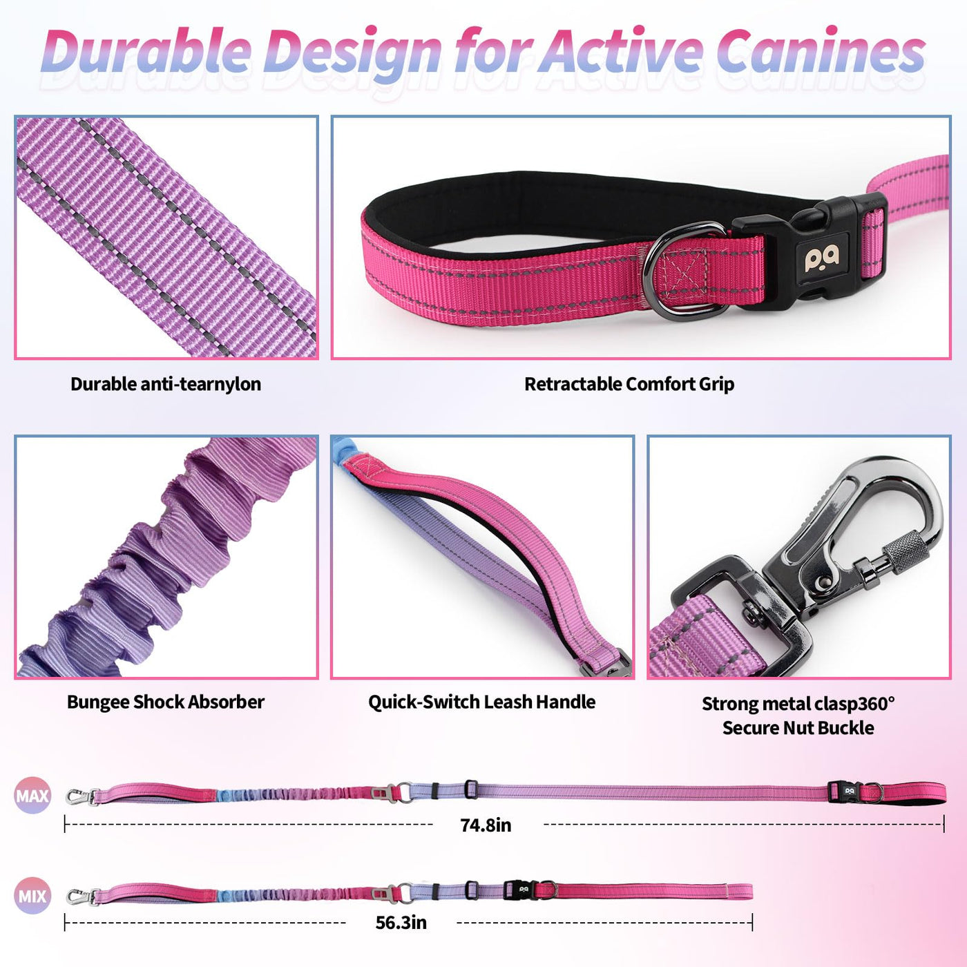 Mlohasing Heavy Duty Hands Free Dog Leash (Pink-Purple)