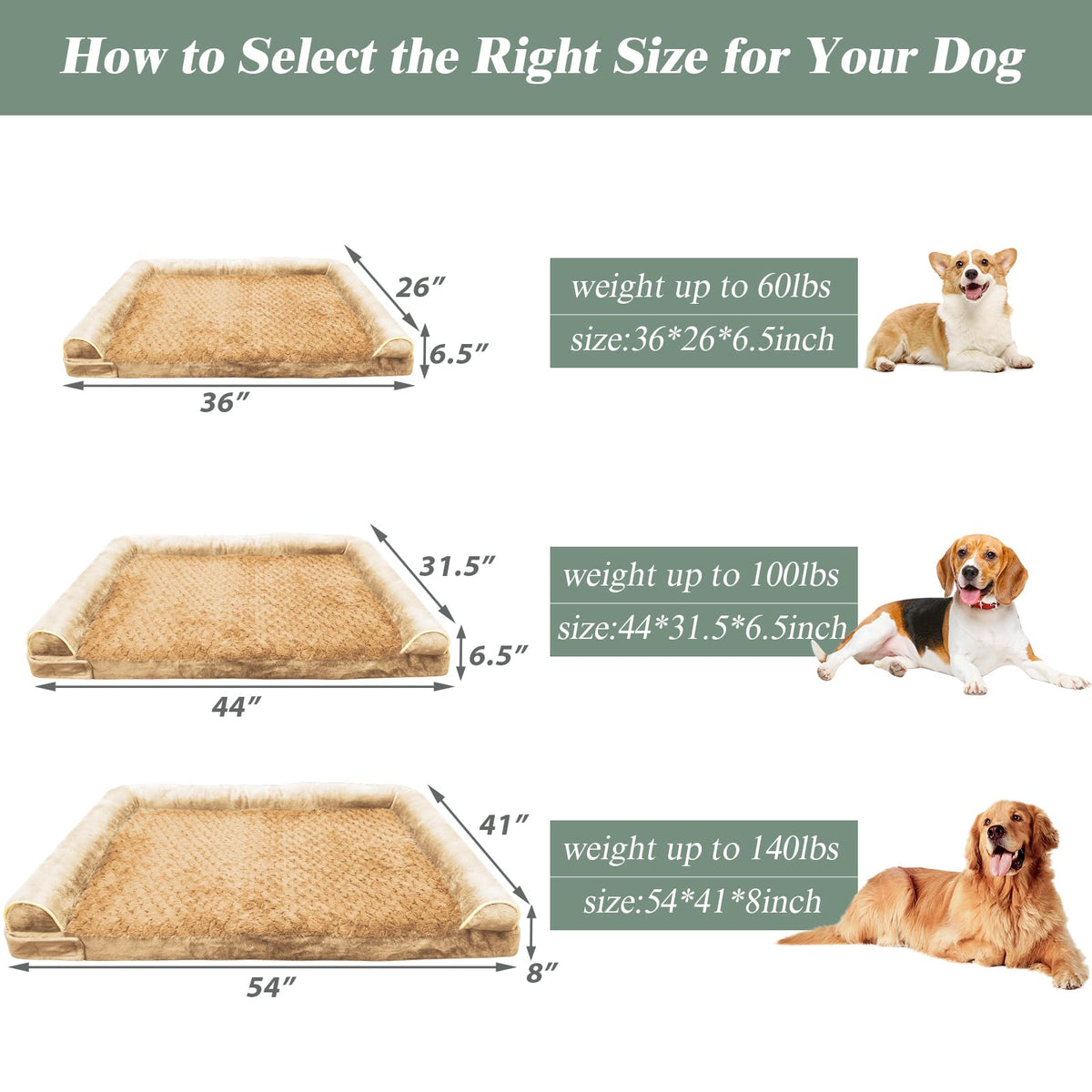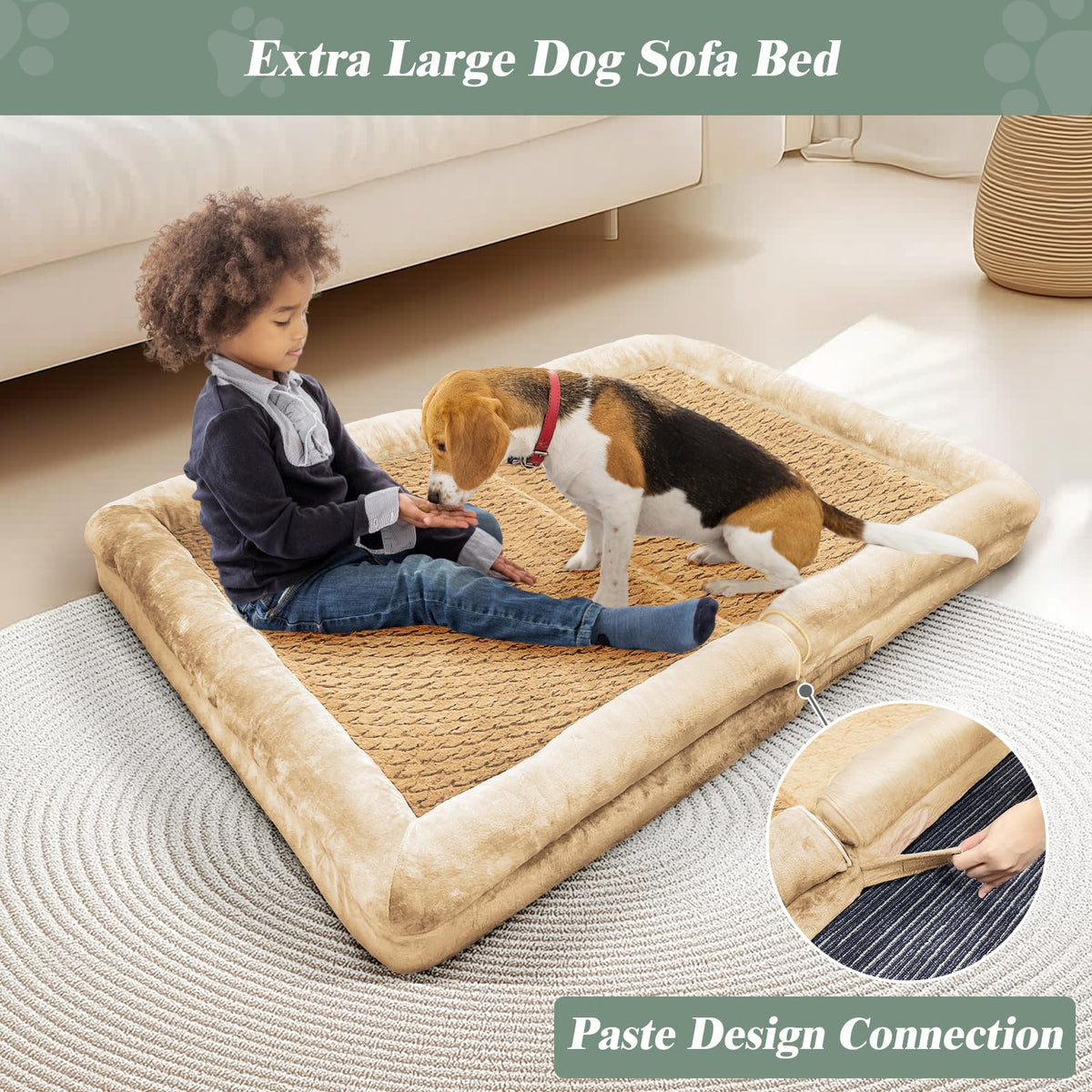 Orthopedic Dog Bed For Large Dog,Memory Foam Xl Extra Large Dog Bed With Stickable Design Waterproof Dog Couch Bed With Washable Removable Cover(54 In,Khaki)