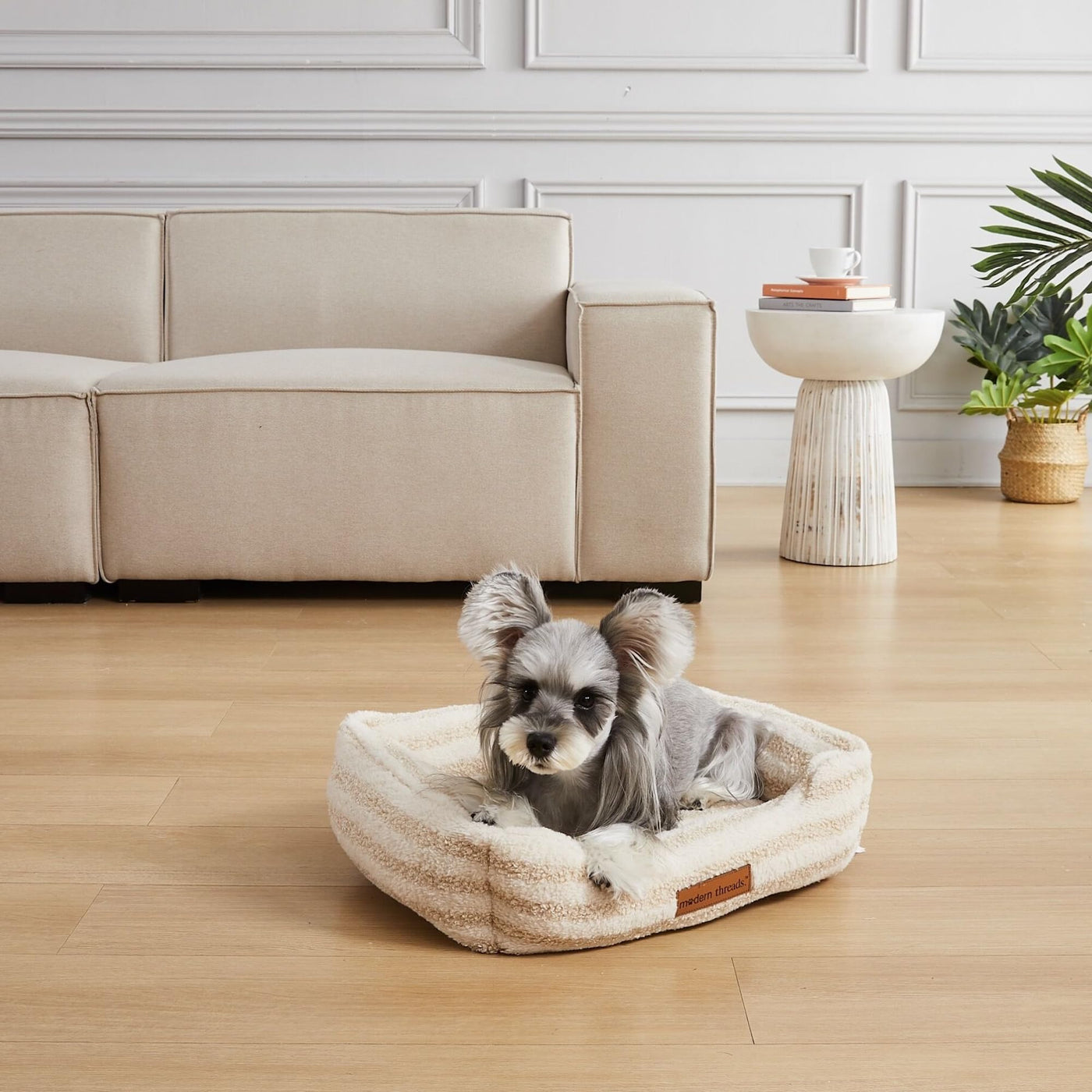 Modern Threads Plush Sherpa Pet Bed For Small And Medium Dogs Ultra Soft Cuddler With Raised Edges For Extra Comfort, Beige