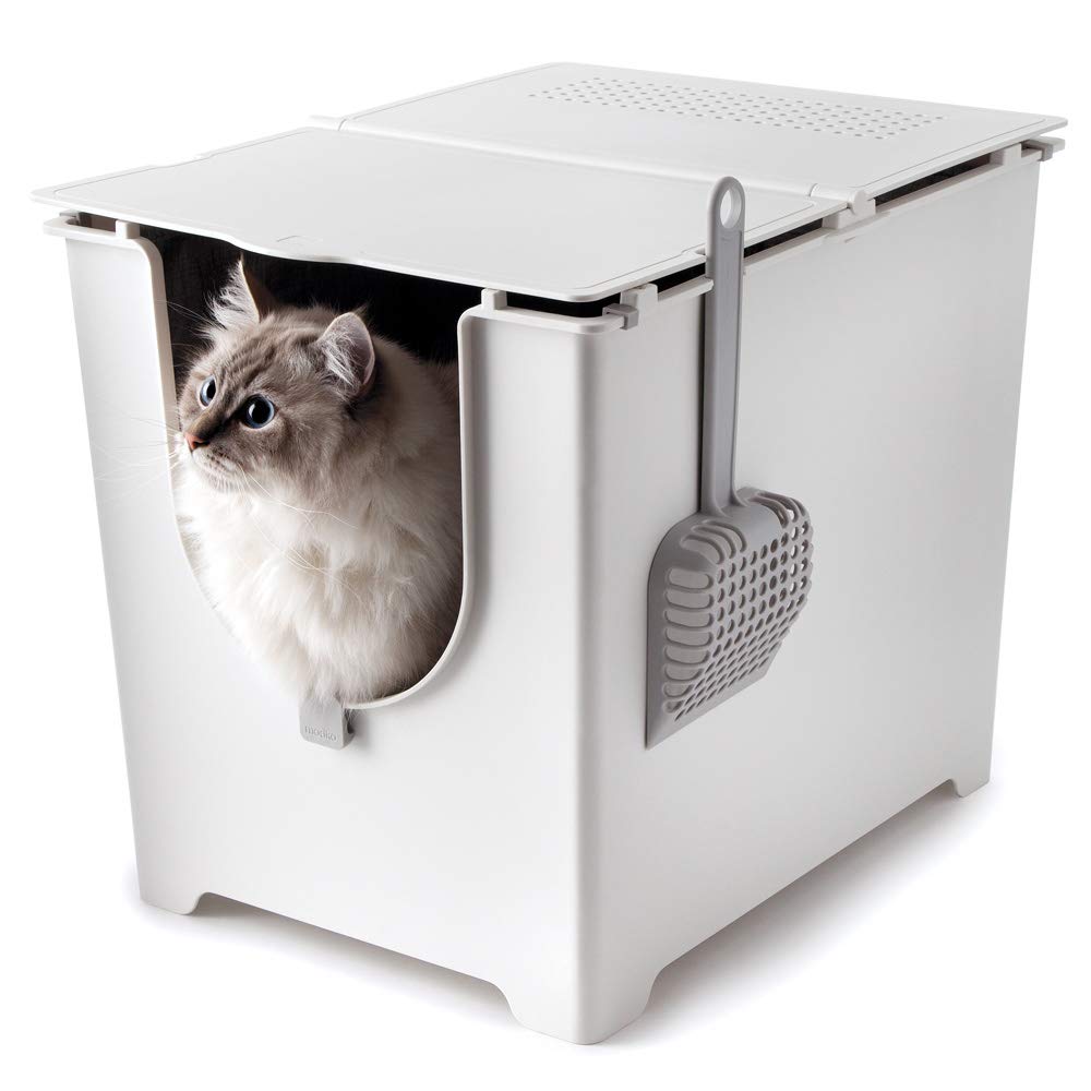 The Modkat Flip Litter Box provides easy access for scooping and cleaning, while offering a spacious interior and three lid positions to satisfy any cat's preference. Choose between fully open, half-open or completely closed for privacy. The top-mounted lid gives Flip a tall, seamless base, which houses a reusable tarp liner for an easy, mess-free litter solution. Dimensions: 20'' L x 15'' W x 16.8'' H.