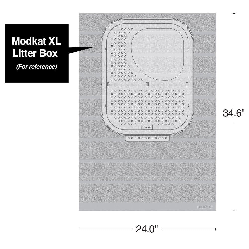 Q: What are the dimensions of the Modkat Litter Mat Large?A: The Modkat Litter Mat Large measures 34.65 inches in length and 24.02 inches in width, making it spacious enough to cover a significant area and effectively trap litter.