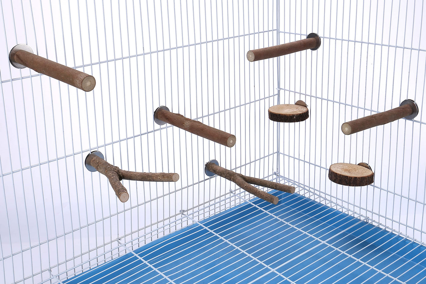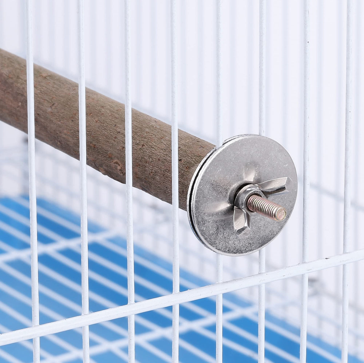 1. Easy to Install: hanging easily onto the cage with the screw and disc system.offering extra living and landing space. Easy to clean and durable in use