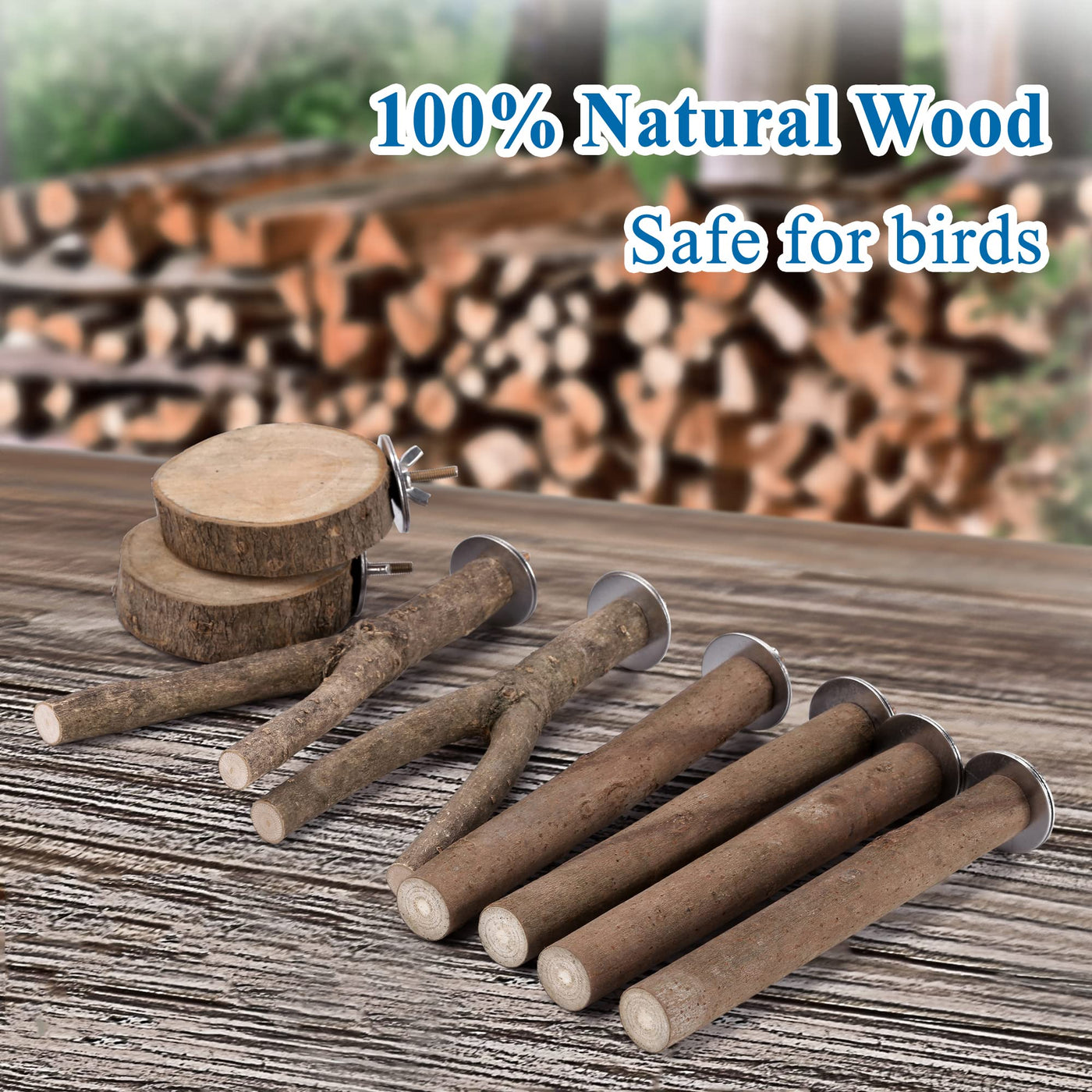 Q: What materials are used in the Mogoko Bird Perch?A: The Mogoko Bird Perch is made from natural wood, ensuring it is non-toxic and safe for your birds. The rough surface of the perch is perfect for catching, chewing, and playing, providing a natural experience for your pets.