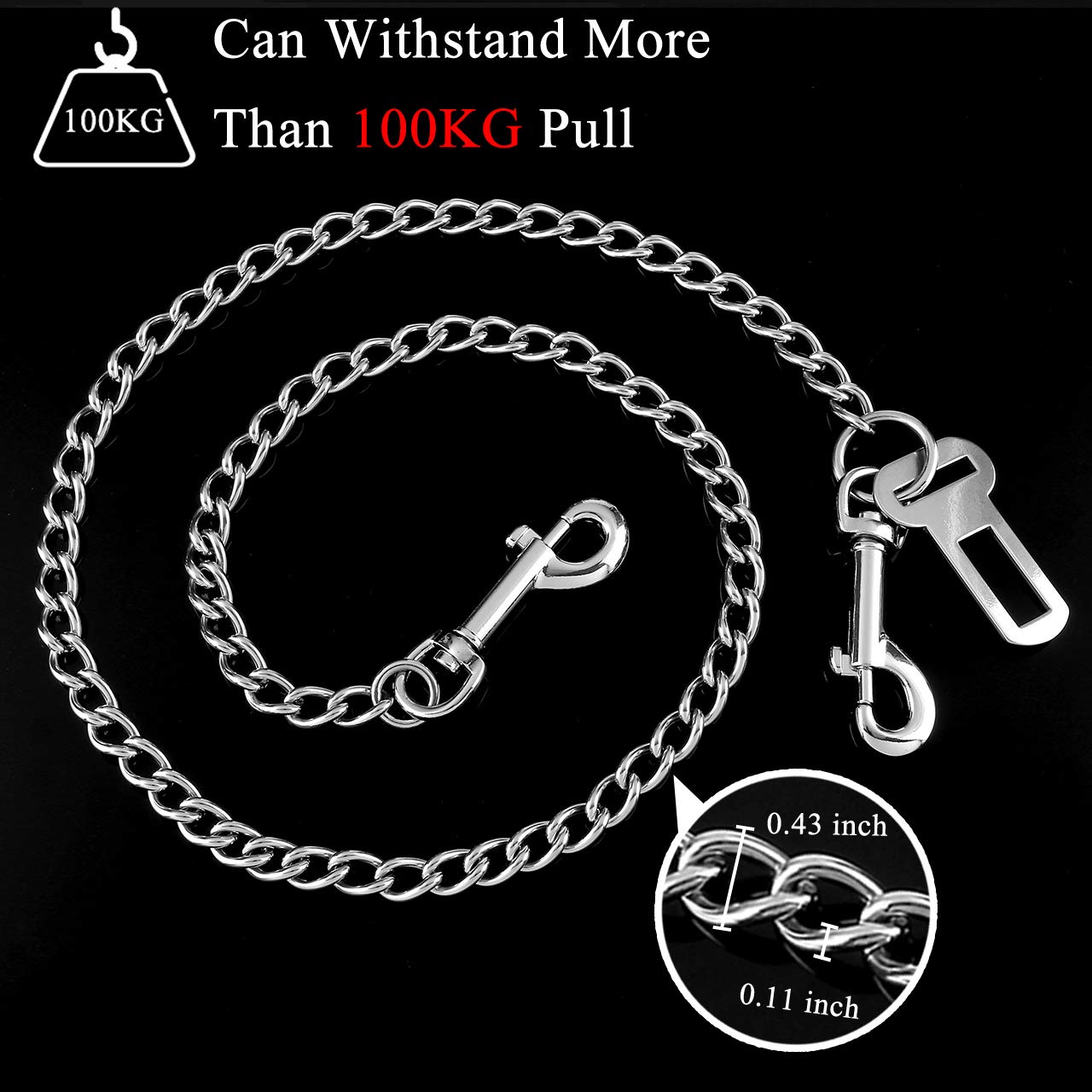 Product Feature: 1. Material:100% stainless steel material for extral strength and durability, keep your dogs restrained in a car without worrying about chewing. 2. Two kinds of attachment: TWO different kinds of attachments(buckle and swivel bull snap), can be connected to your car's regular easily with buckle or use bull snap to contact latch bar or cars frame. so the passager and your pet can use the in the same time. 3.0mm diameter, can withstand more than 100kg pull, suitable for big/active/aggressive canine dog