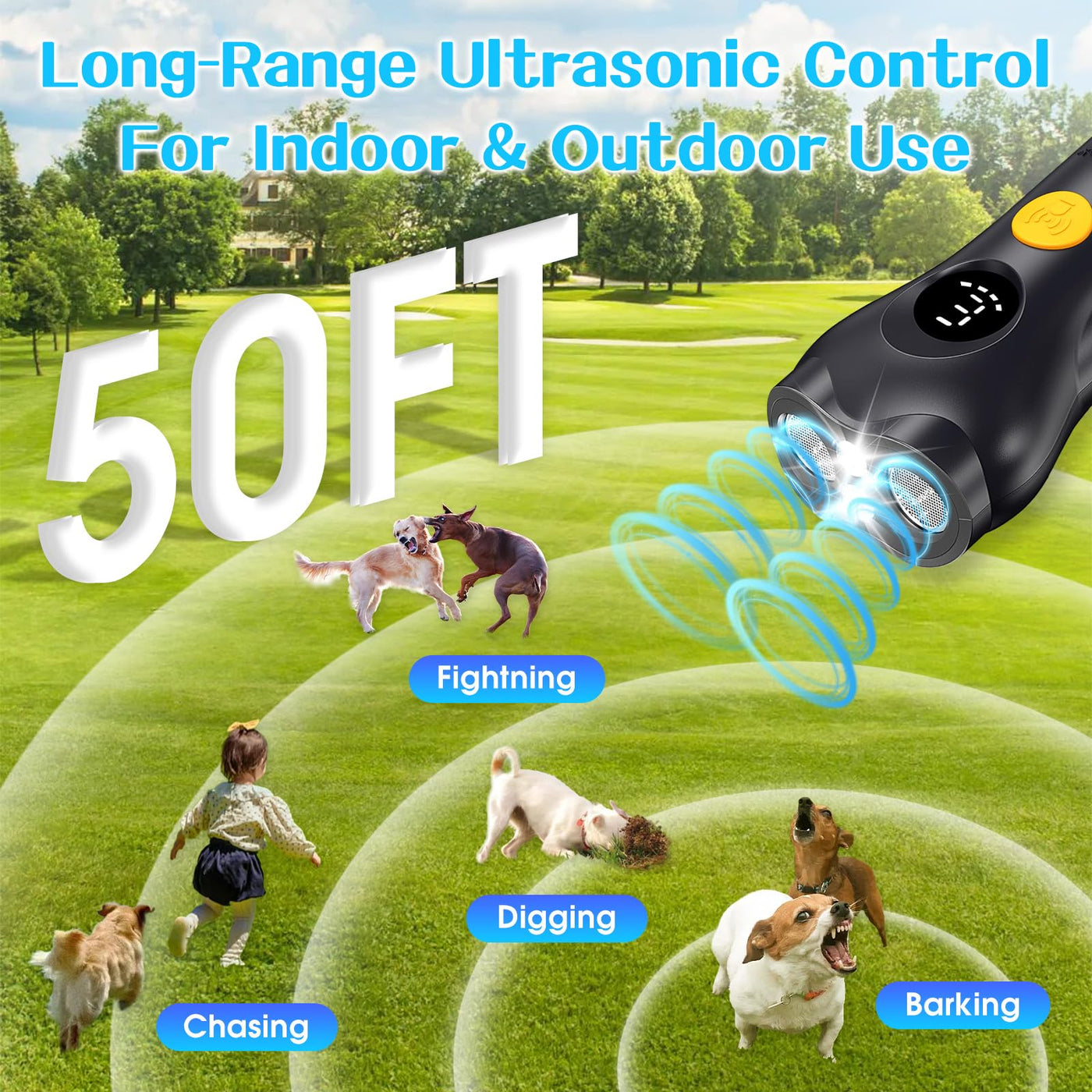 Dog Bark Deterrent Device - Rechargeable Anti-Barking & Training Device For Dogs, 50Ft Ultrasonic Control, Stops Barking With One Button, Corrects Behavior In Small & Large Dogs
