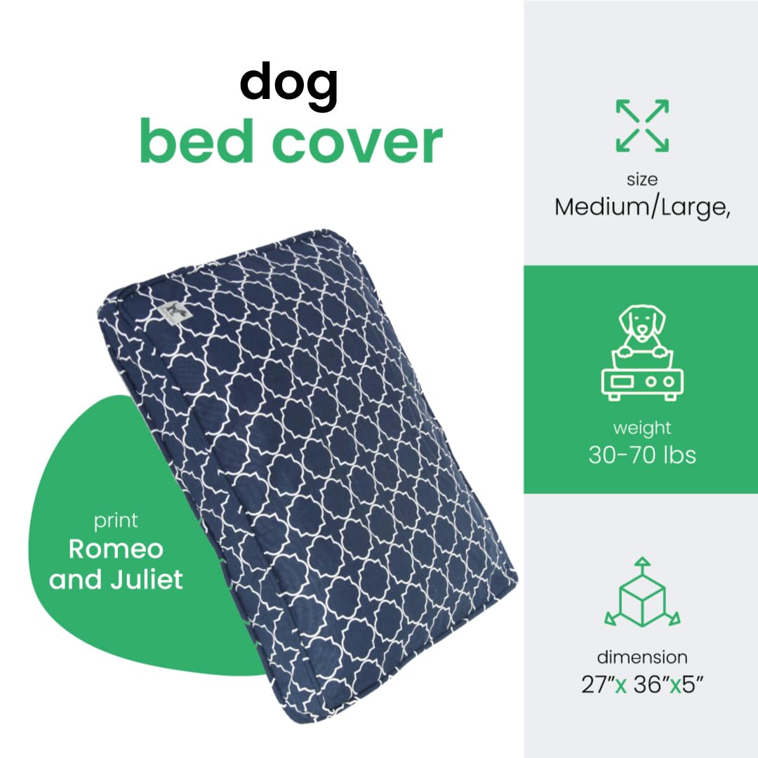 Molly Mutt Medium To Large Dog Bed Cover- Romeo & Juliet Print - Measures 27”X36”X5’’ - 100% Cotton - Durable - Breathable - Sustainable - Machine Washable Dog Bed Cover