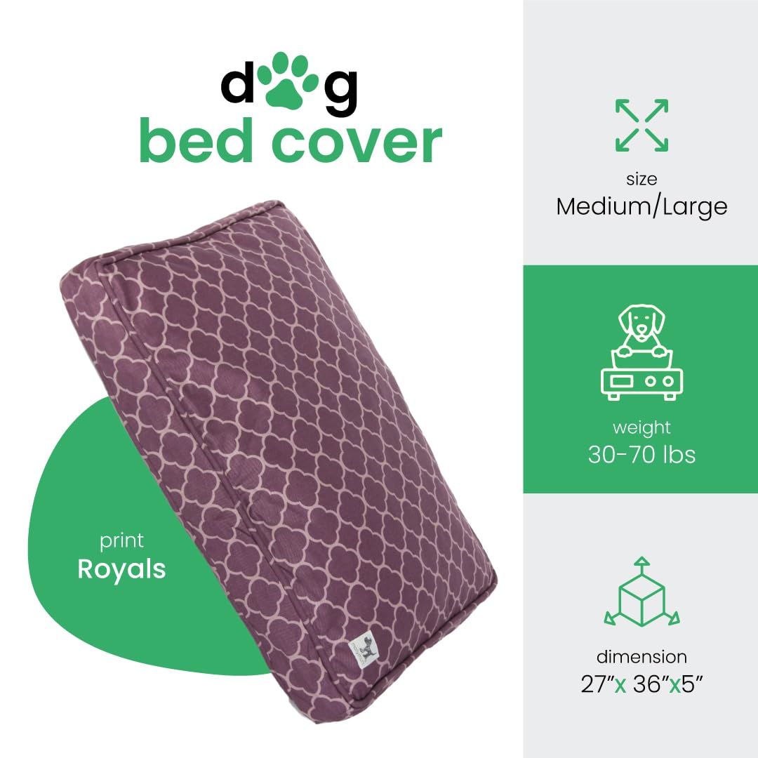 Molly Mutt Medium To Large Dog Bed Cover - Royals Print - Measures 27 X36 X5 - 100% Cotton - Durable - Breathable - Sustaina