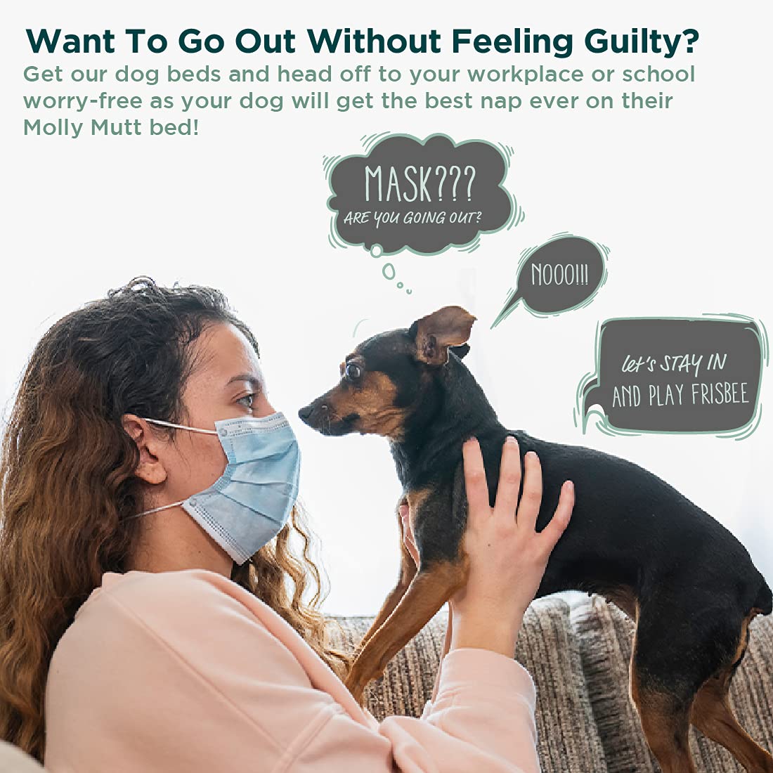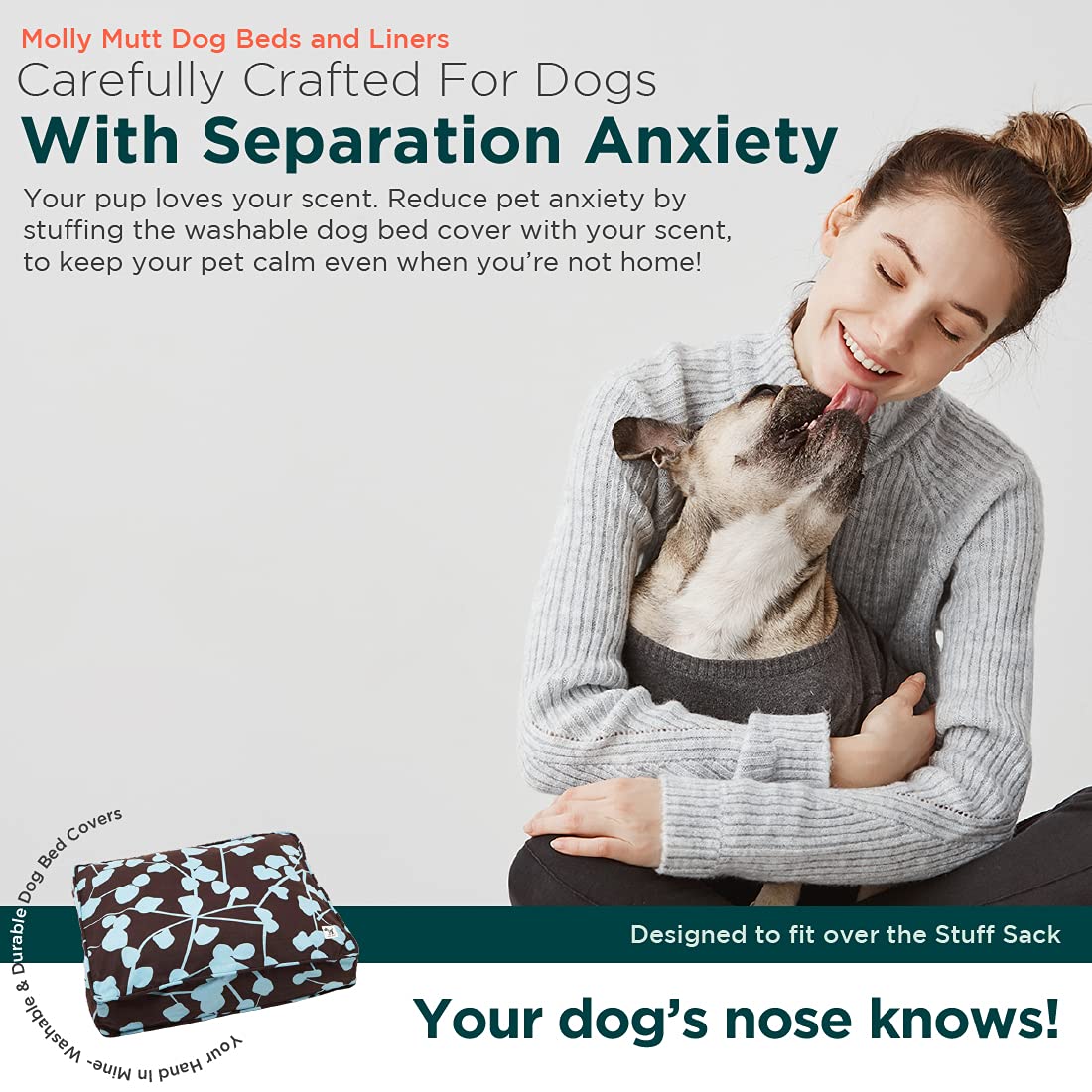 Q: What makes the Molly Mutt Dog Bed Cover unique compared to other dog bed covers?A: The Molly Mutt Dog Bed Cover stands out due to its sustainable design, allowing you to use personal items to create a cozy bed for your dog. Additionally, the high-quality cotton material is breathable and comfortable, while the unique print adds a stylish touch.