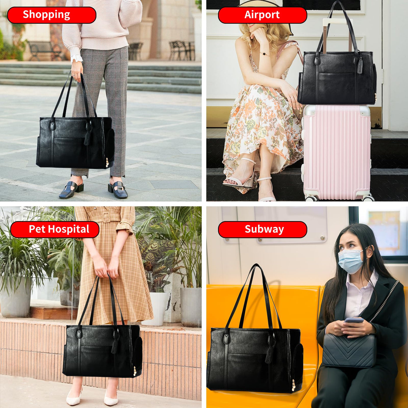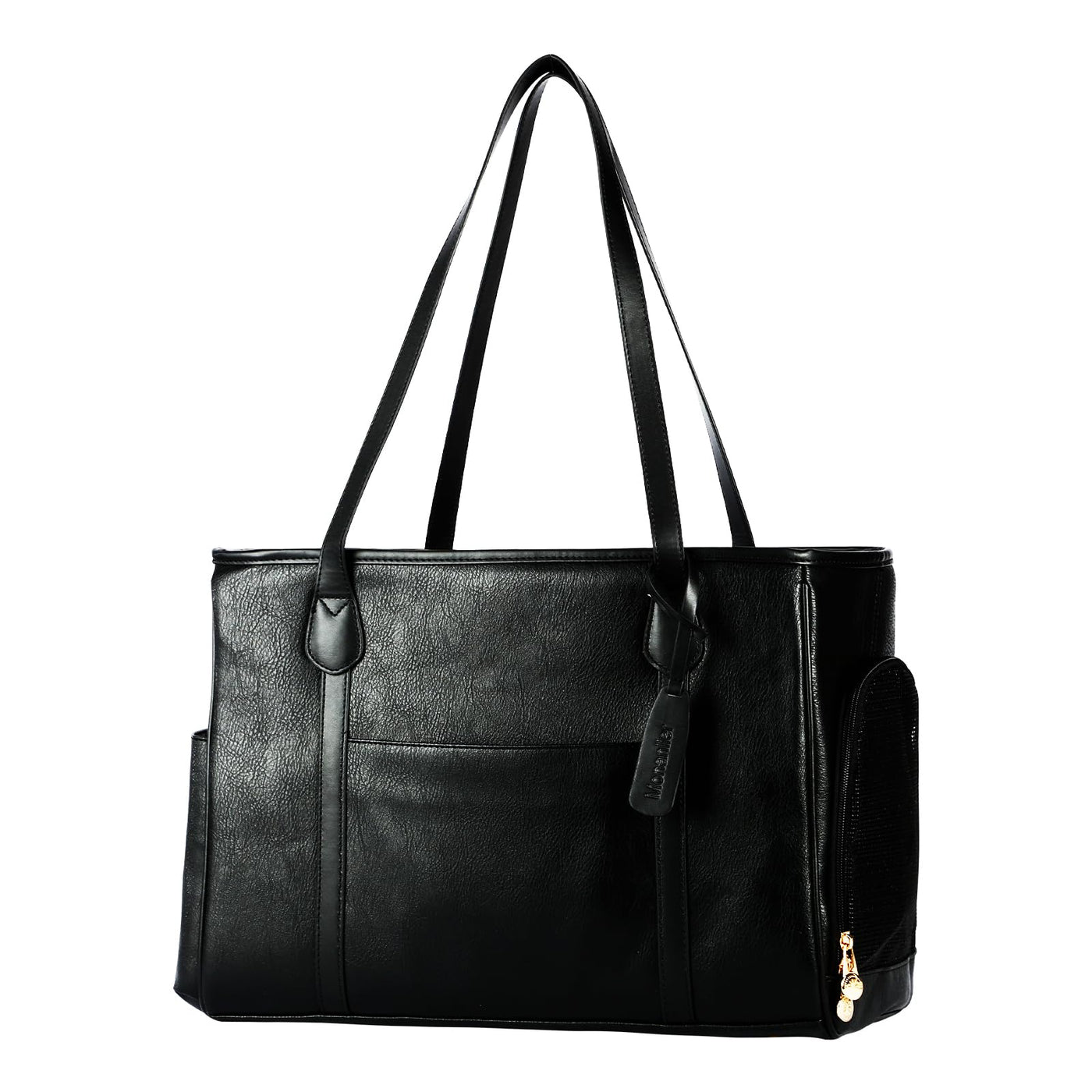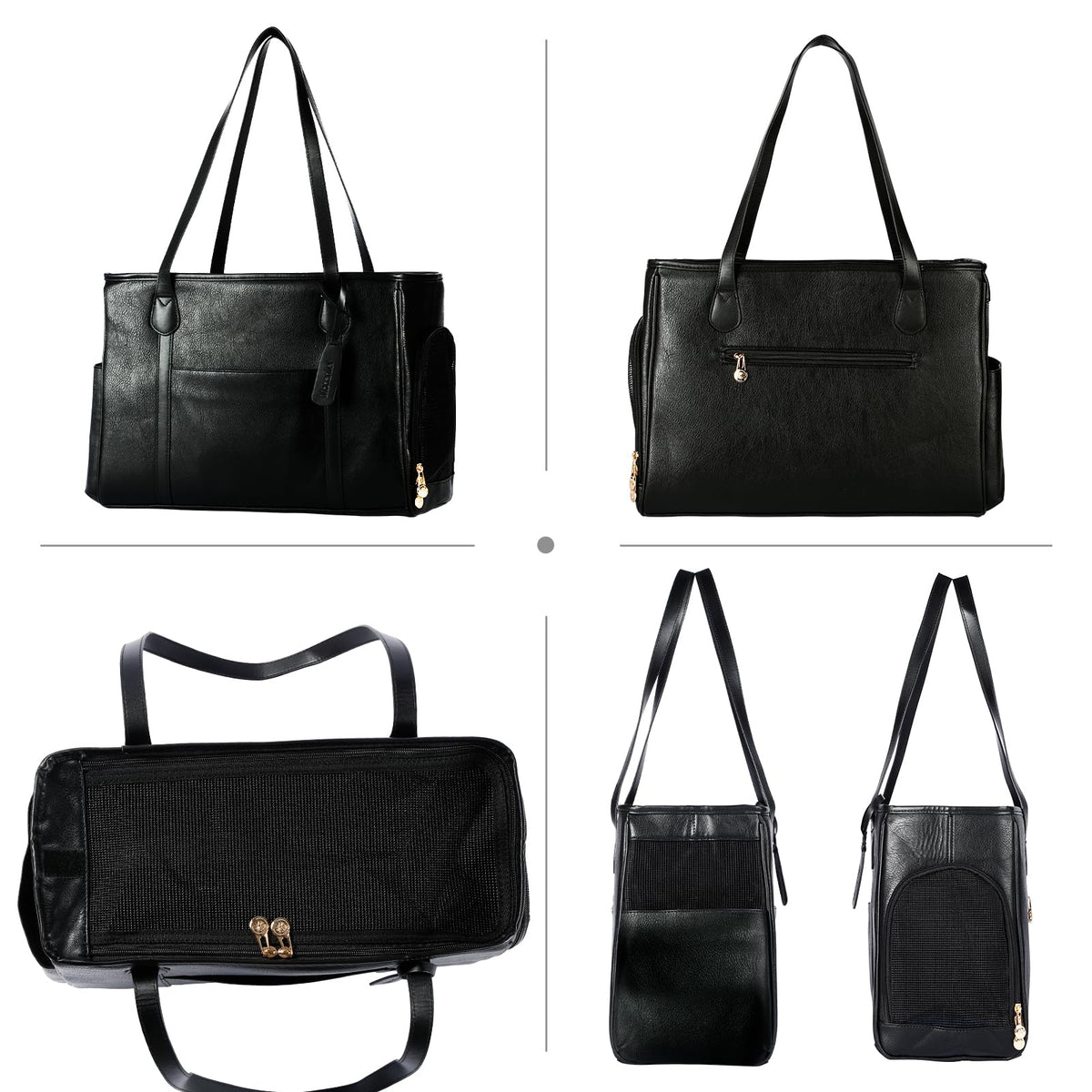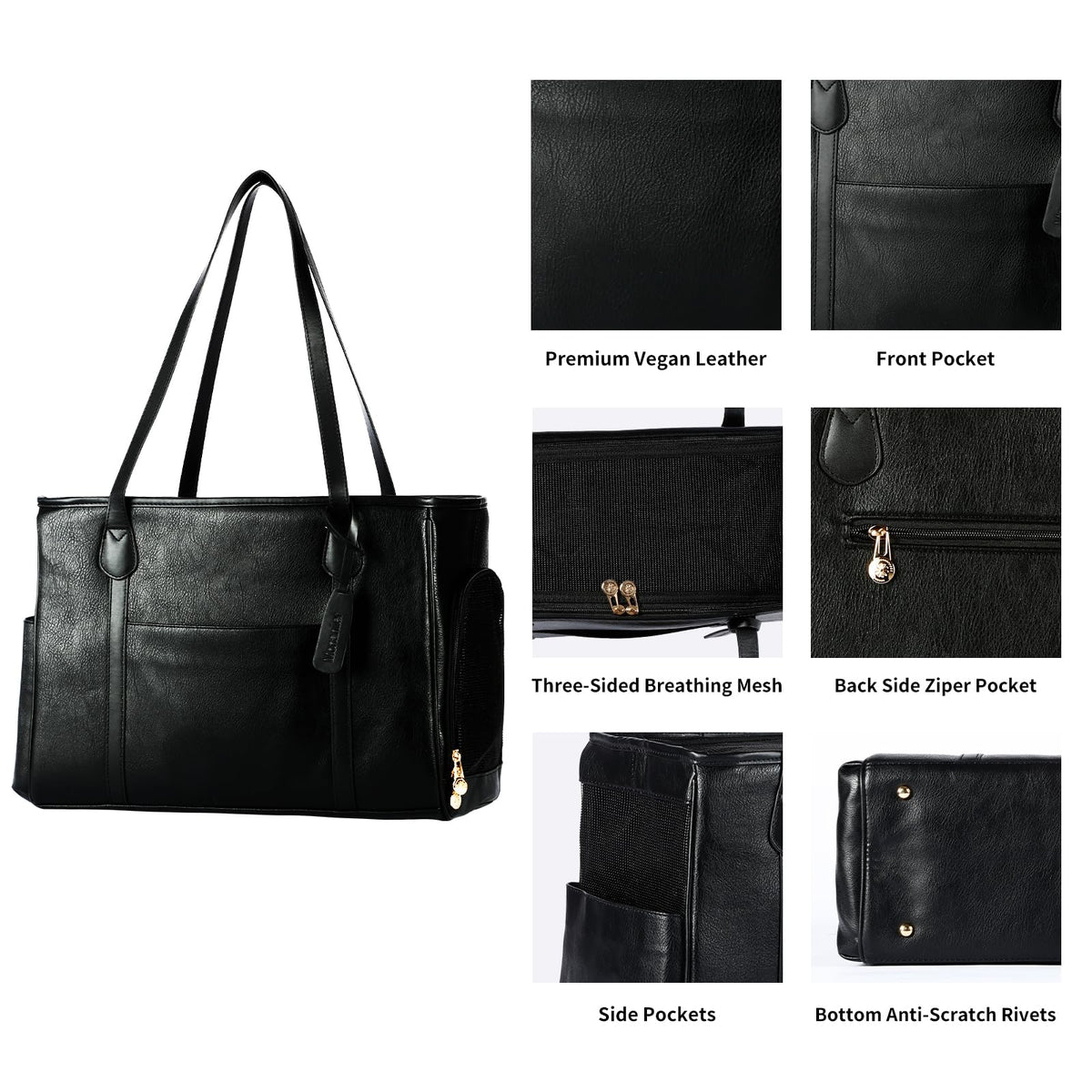 Monanller Stylish Dog Purse Carrier, Leather Pet Carrier Bag For Small Dogs Cats Puppy, Airline Approved Soft-Sided Carrier Blac