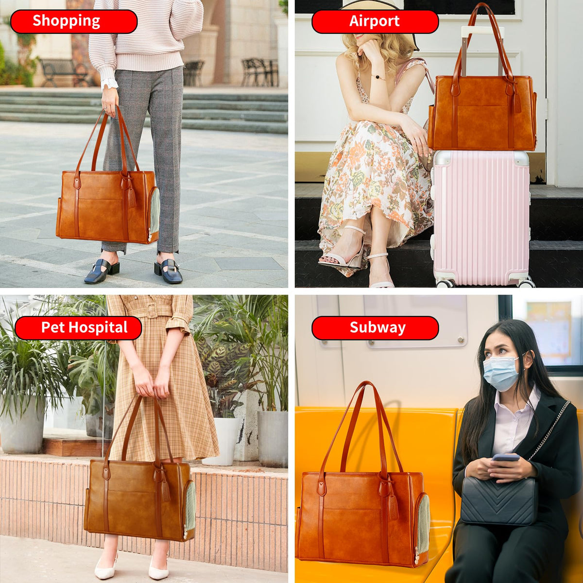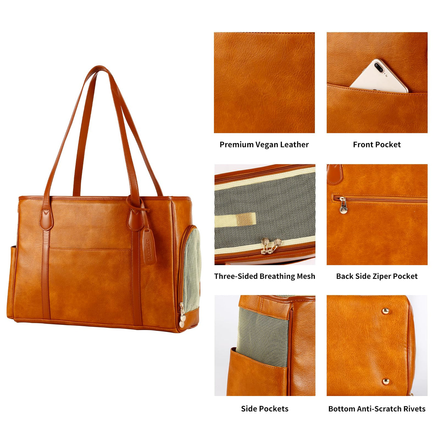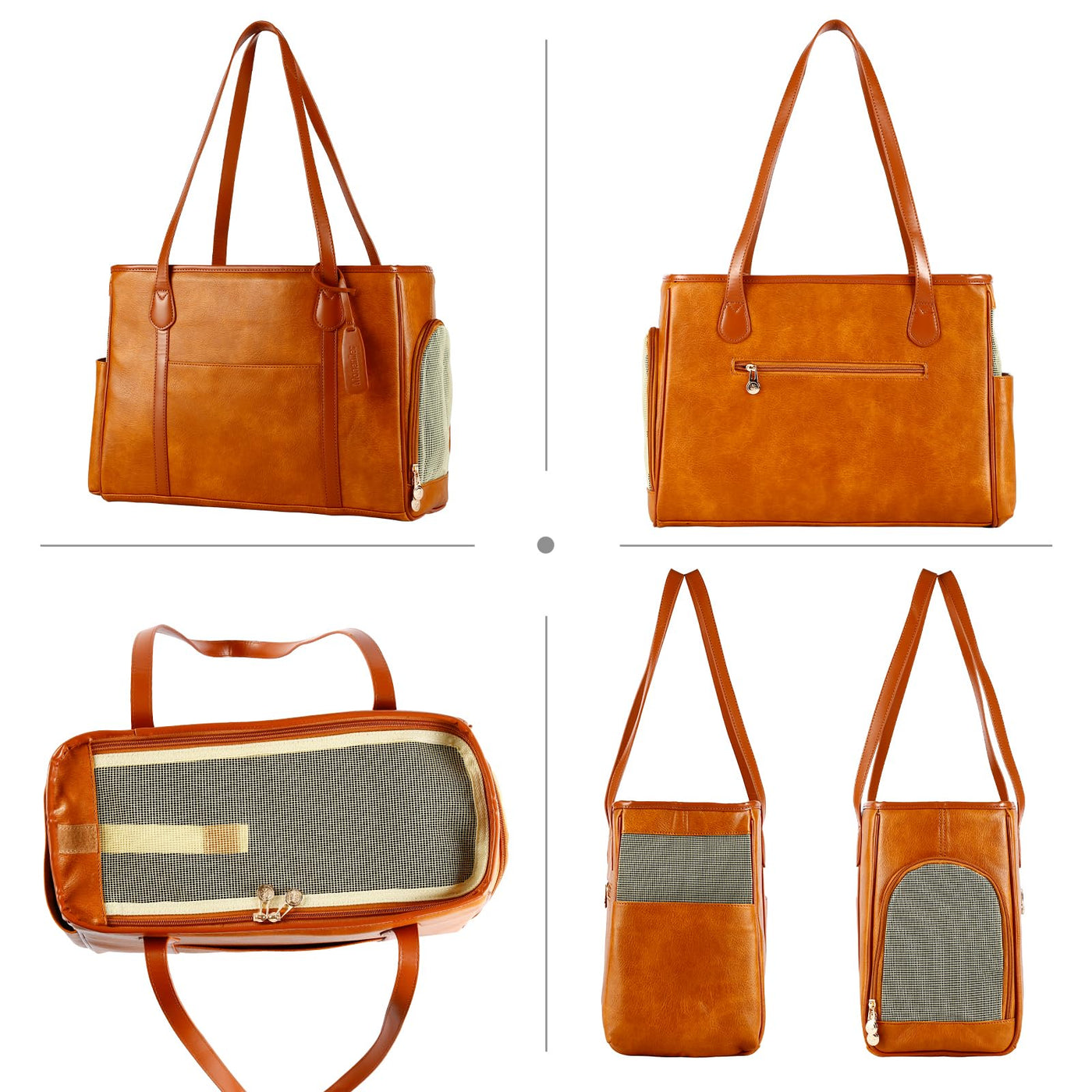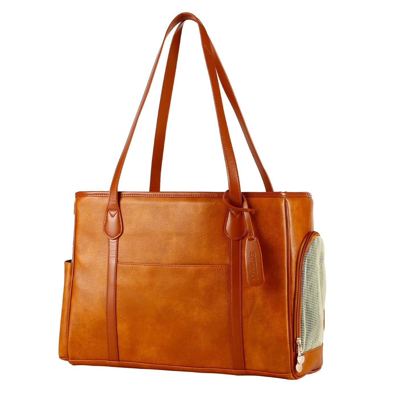 Monanller Stylish Dog Purse Carrier, Leather Pet Carrier Bag For Small Dogs Cats Puppy, Airline Approved Soft-Sided Carrier Brow