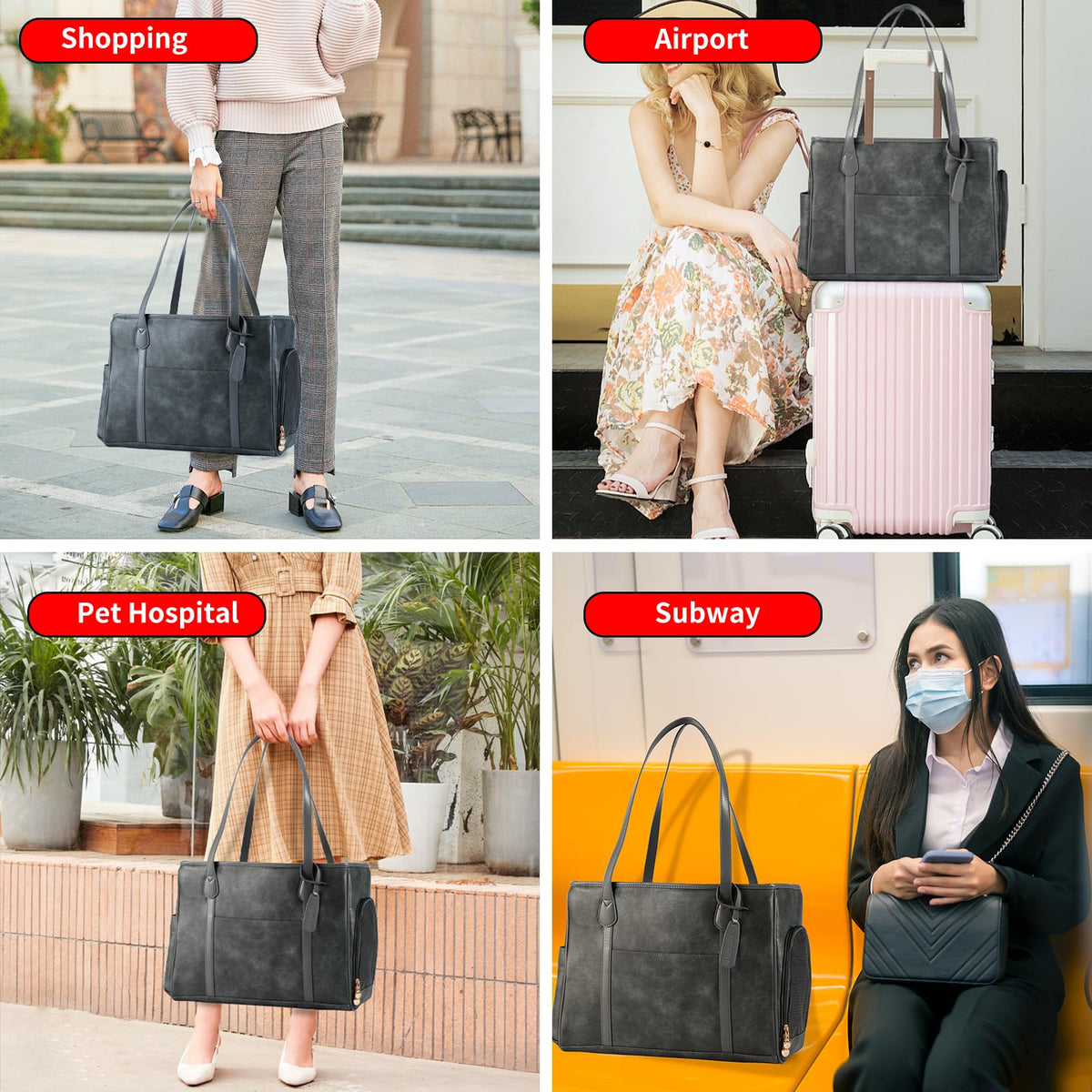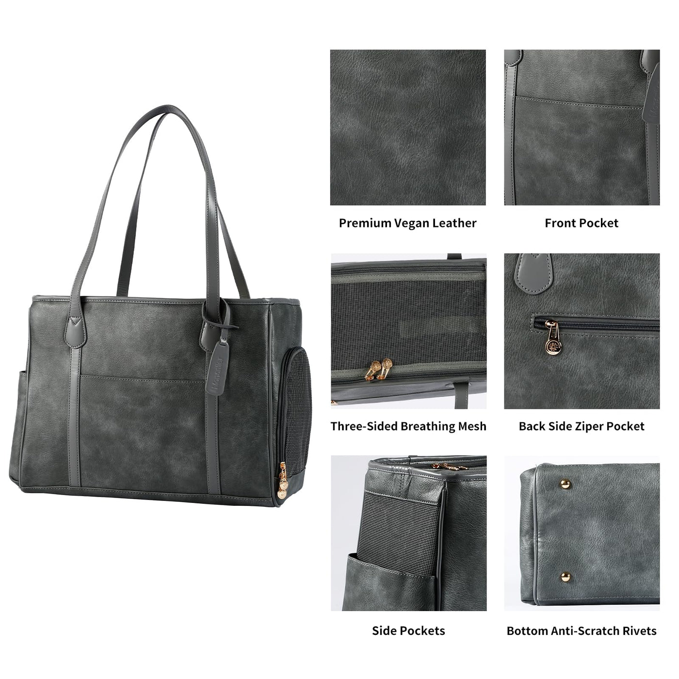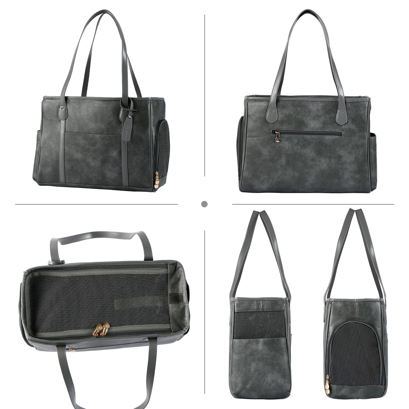 Monanller Stylish Dog Purse Carrier, Leather Pet Carrier Bag For Small Dogs Cats Puppy, Airline Approved Soft-Sided Carrier Grey