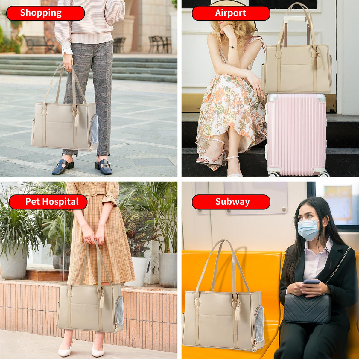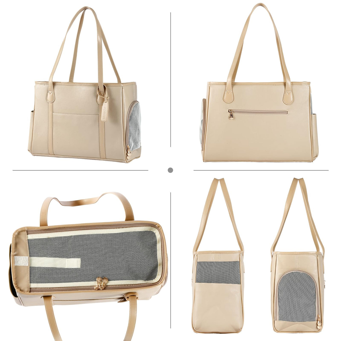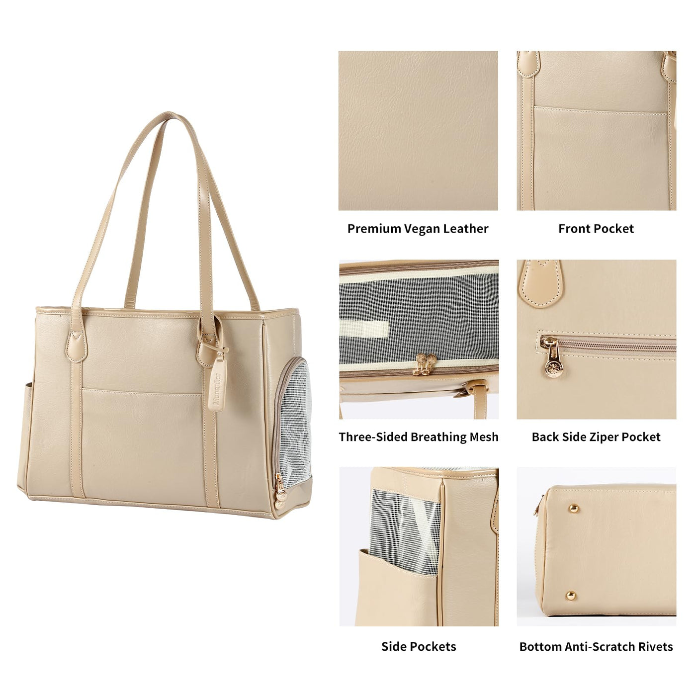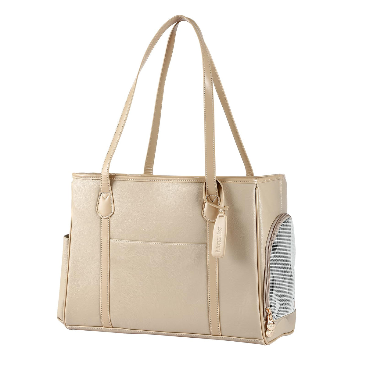 Monanller Stylish Dog Purse Carrier, Leather Pet Carrier Bag For Small Dogs Cats Puppy, Airline Approved Soft-Sided Carrier Ivor