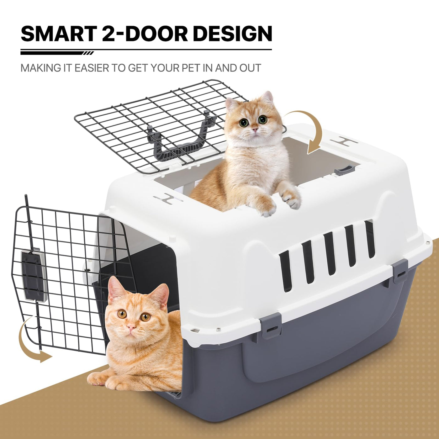 Monibloom 22-Inch Dog Crate Plastic 2-Door Top Loading Cat Carrier, Hard-Sided Dog Travel Carrier For Small Dogs And Cats, Venti