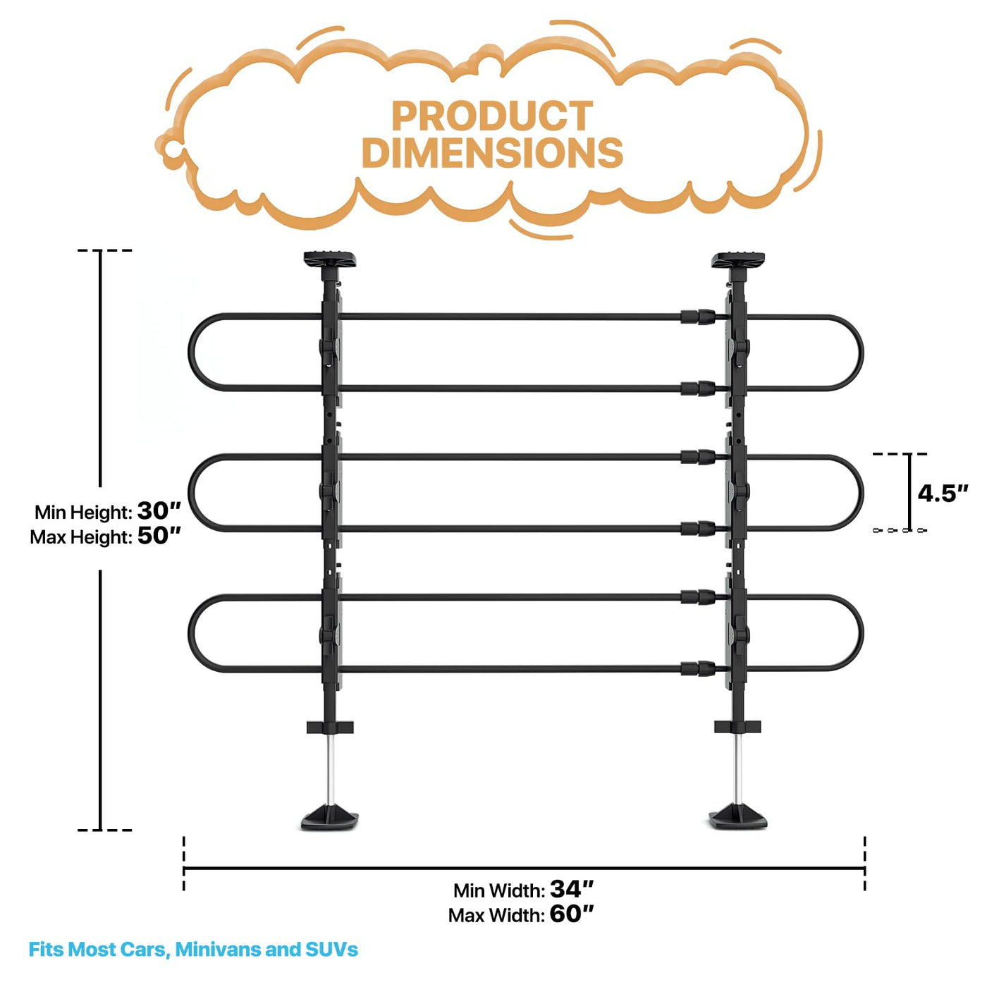 Monibloom Metal Dog Barrier For Suvs, Vehicles, Cars & Trucks, 34'-60' Wide, 30'-50' Tall, Easy To Store