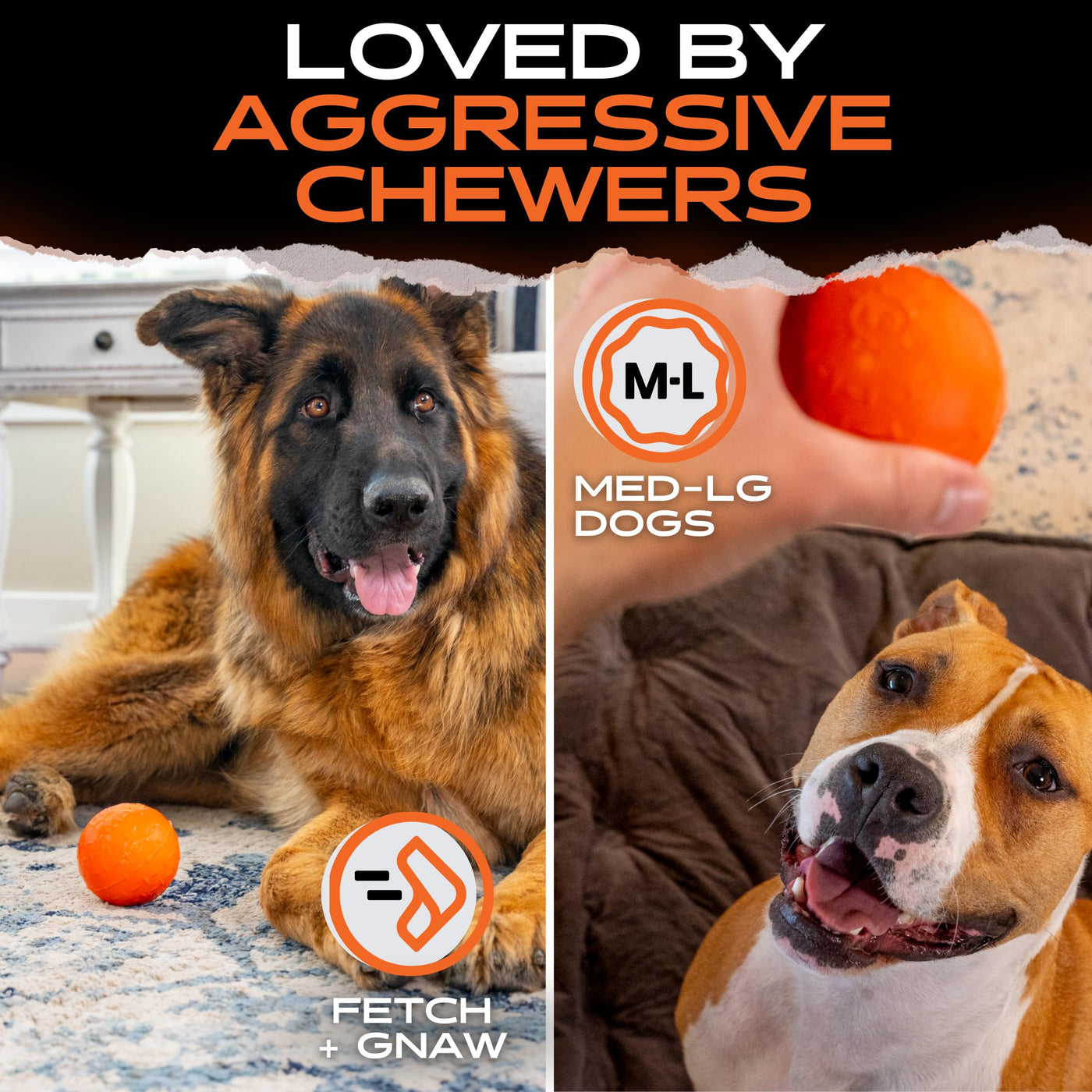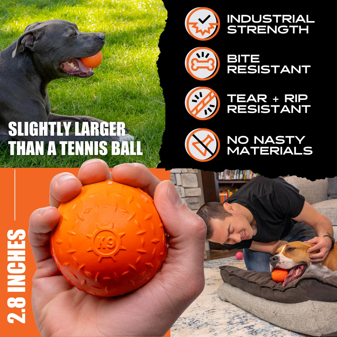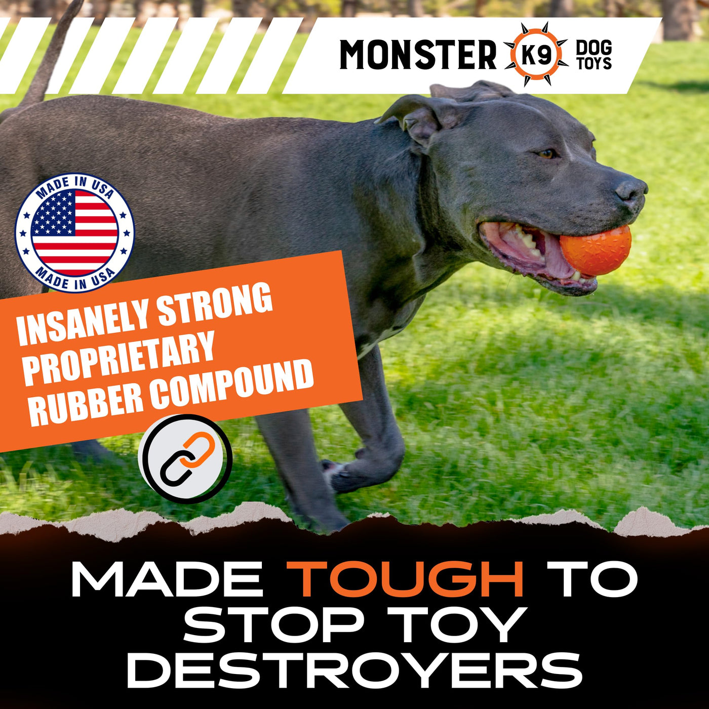 Monster K9 Ultra Durable Dog Ball - Medium & Large Breed - Dog Toy For Super Aggressive Power Chewers - Tough & Strong, Extreme