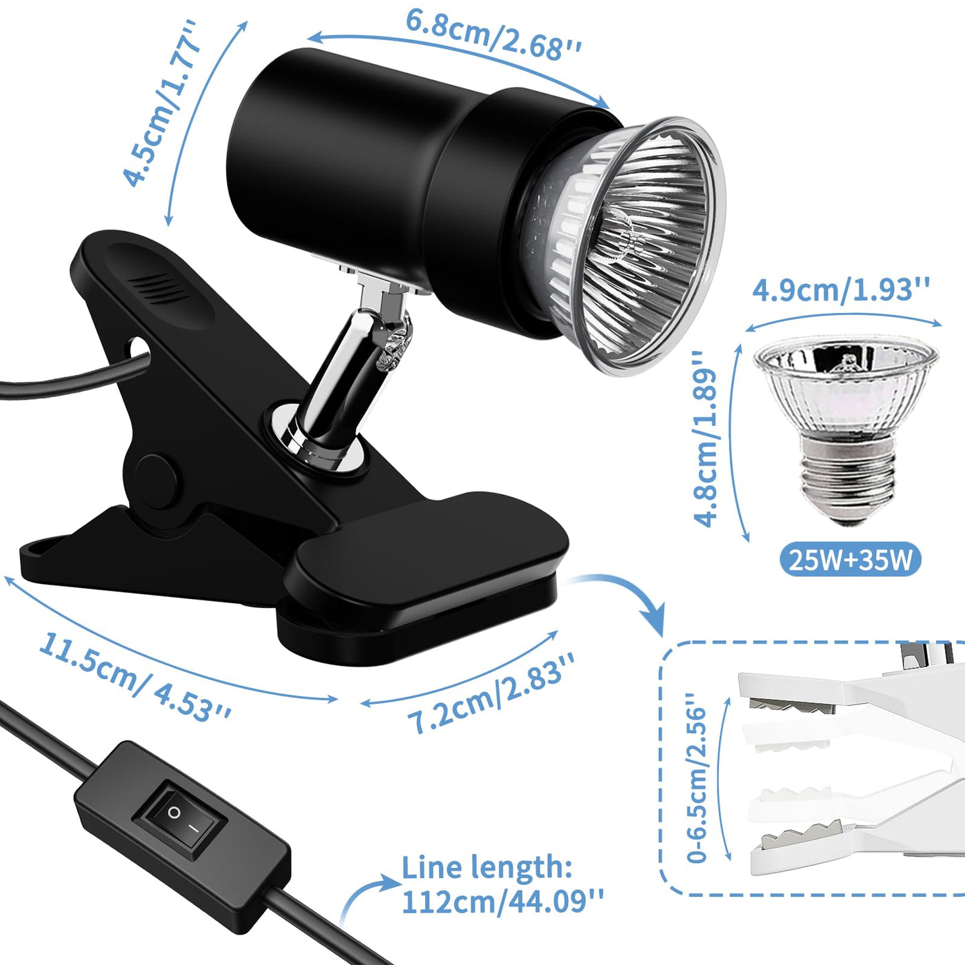 Moonorange Reptile Heat Lamp, Rotatable Uva/Uvb Light Lamp With 2Pcs Basking Bulbs (25W + 35W), Suitable For Bearded Dragon, Sna