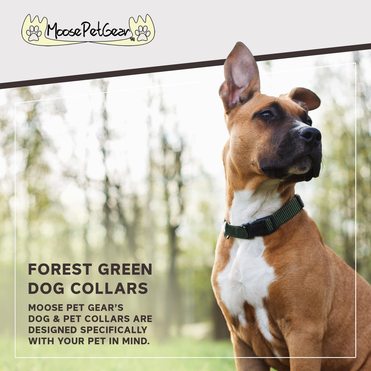 Moose Pet Wear Classic Dog Collar - Adjustable Pet Collars, 3/4 Inch Wide, Medium, Forest Green
