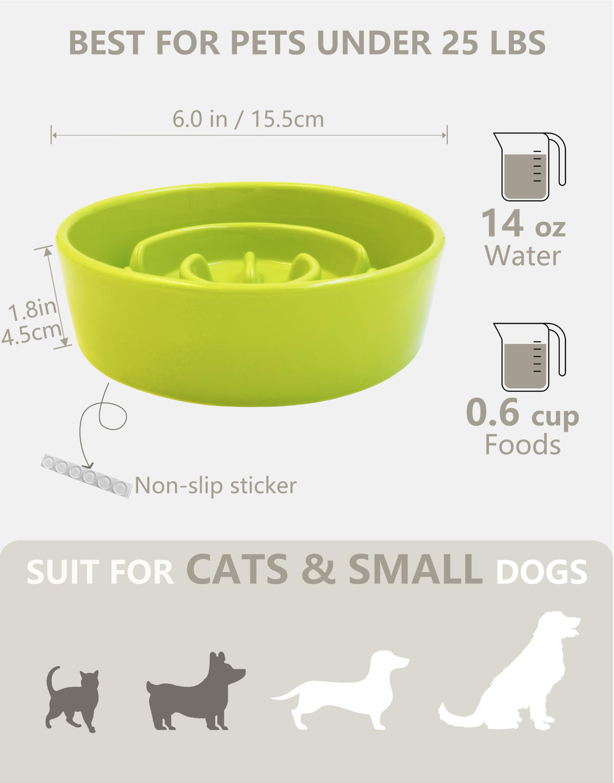 Mopang Ceramic Slow Feeder Dog Bowls, 0.6 Cup Slow Feeder For Small Dogs And Cats, Puzzle Maze Bowl, Prevents Choking, 6In, Gree