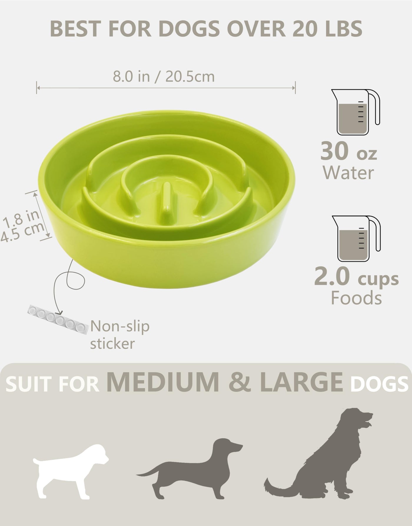 Mopang Ceramic Slow Feeder Dog Bowls, 2.0 Cups Slow Feeder For Medium And Large Dogs, Puzzle Maze Bowl To Slow Down Eating, 30Oz