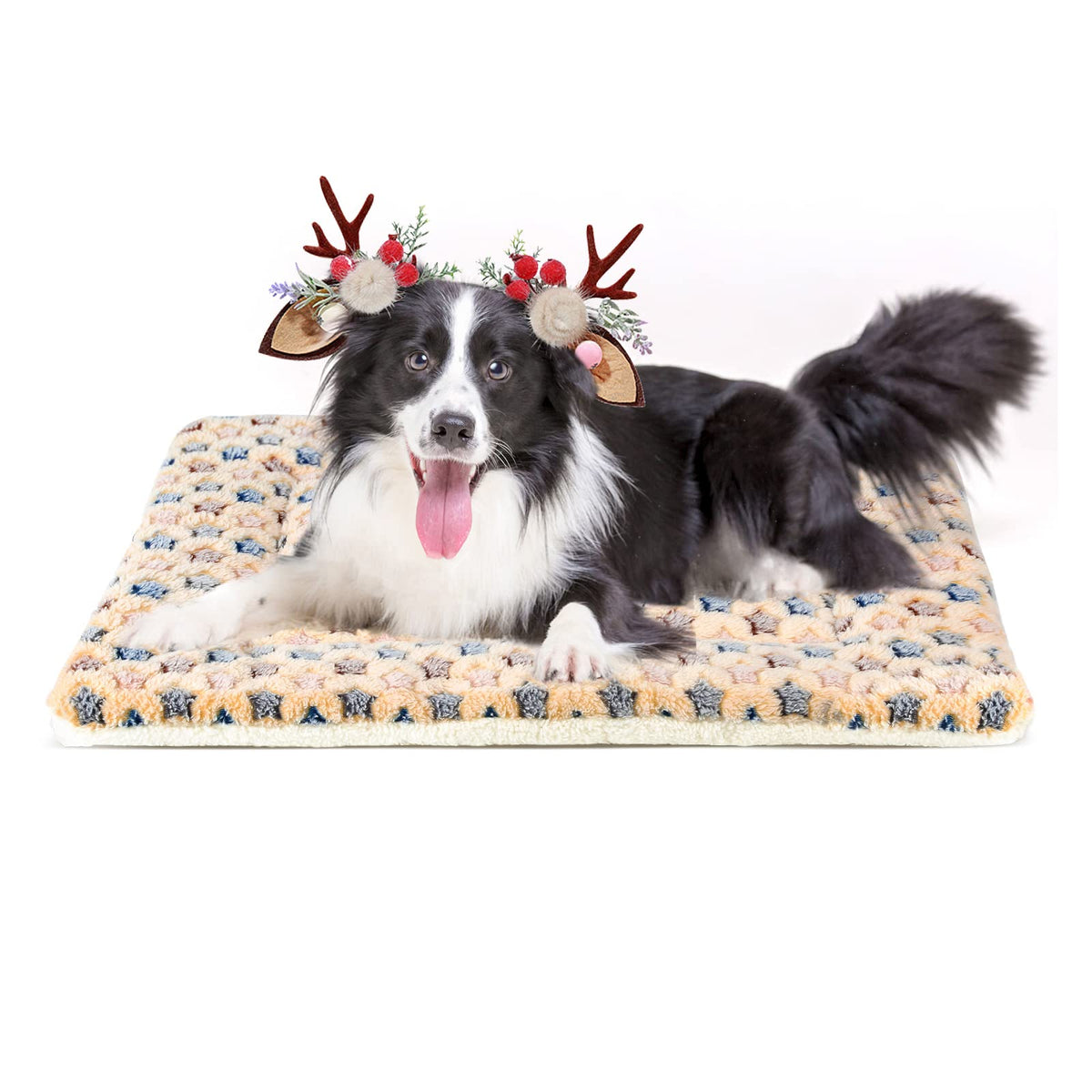 Mora Pets Dog Bed Crate Pad Ultra Soft Pet Bed With Cute Star Print Washable Crate Mat For Large Medium Small Dogs Reversible Fleece Dog Crate Kennel Mat Cat Bed Liner 35 X 22.8 Inch Brown