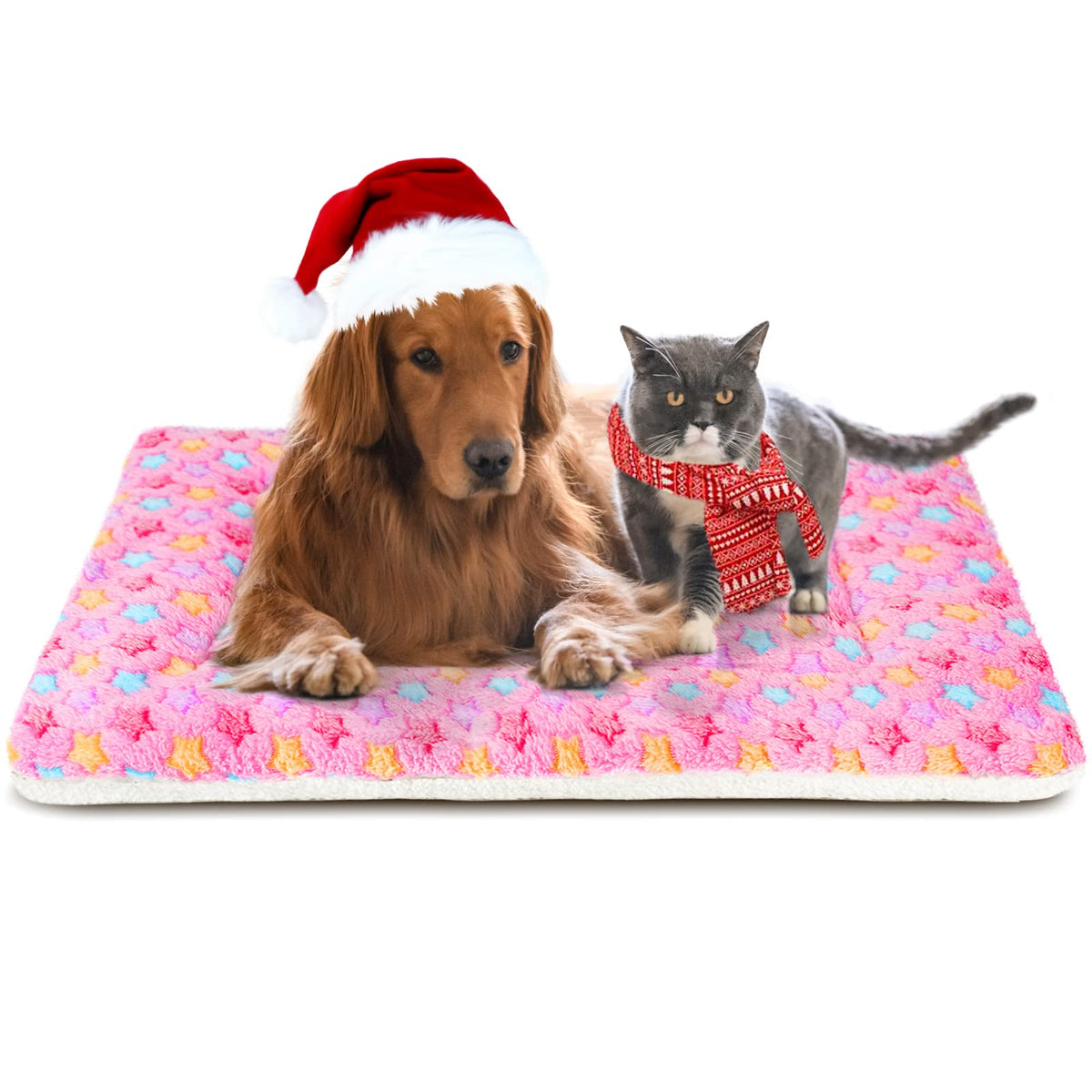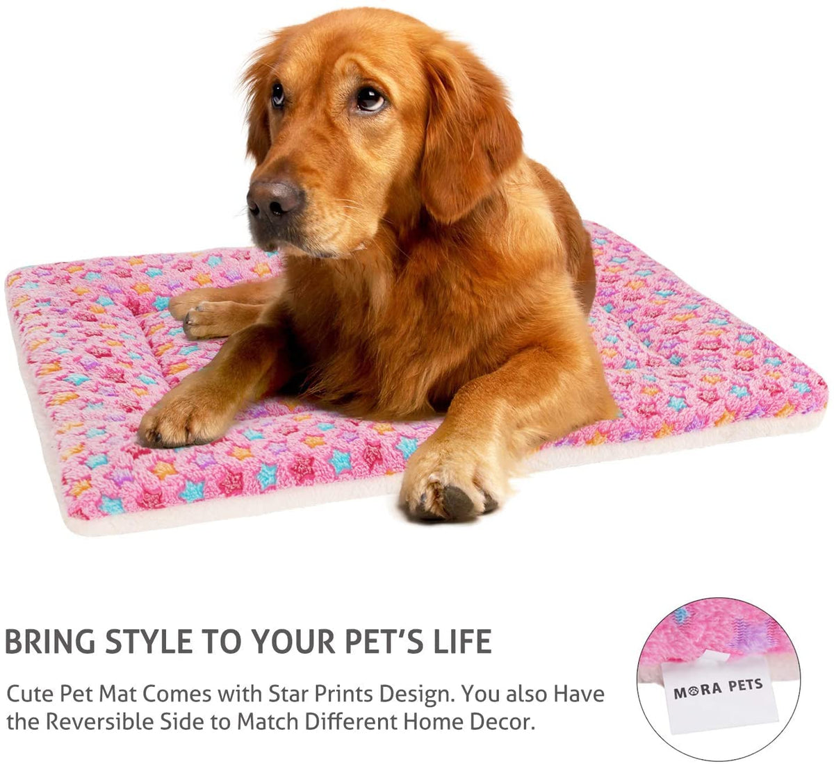 Mora Pets Dog Bed Crate Pad Ultra Soft Pet Bed With Cute Star Print Washable Crate Mat For Large Medium Small Dogs Reversible Fleece Dog Crate Kennel Mat Cat Bed Liner 41 X 29 Inch Pink