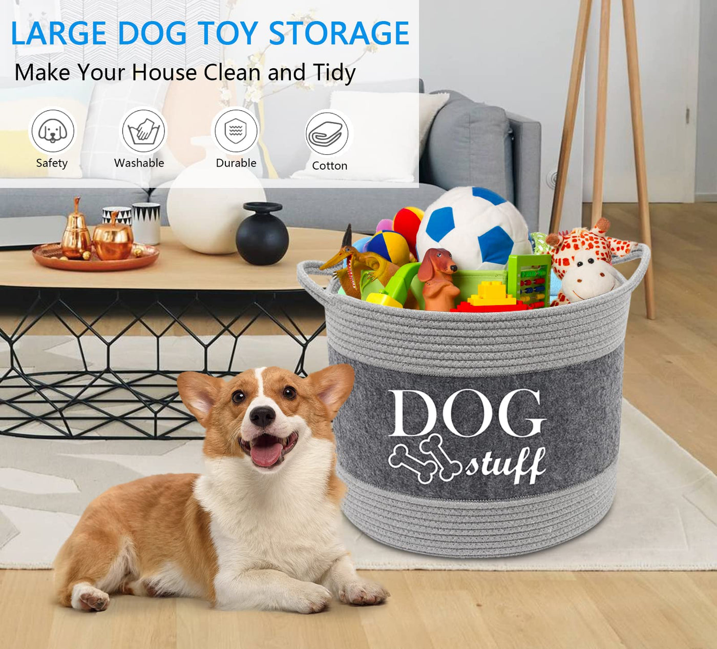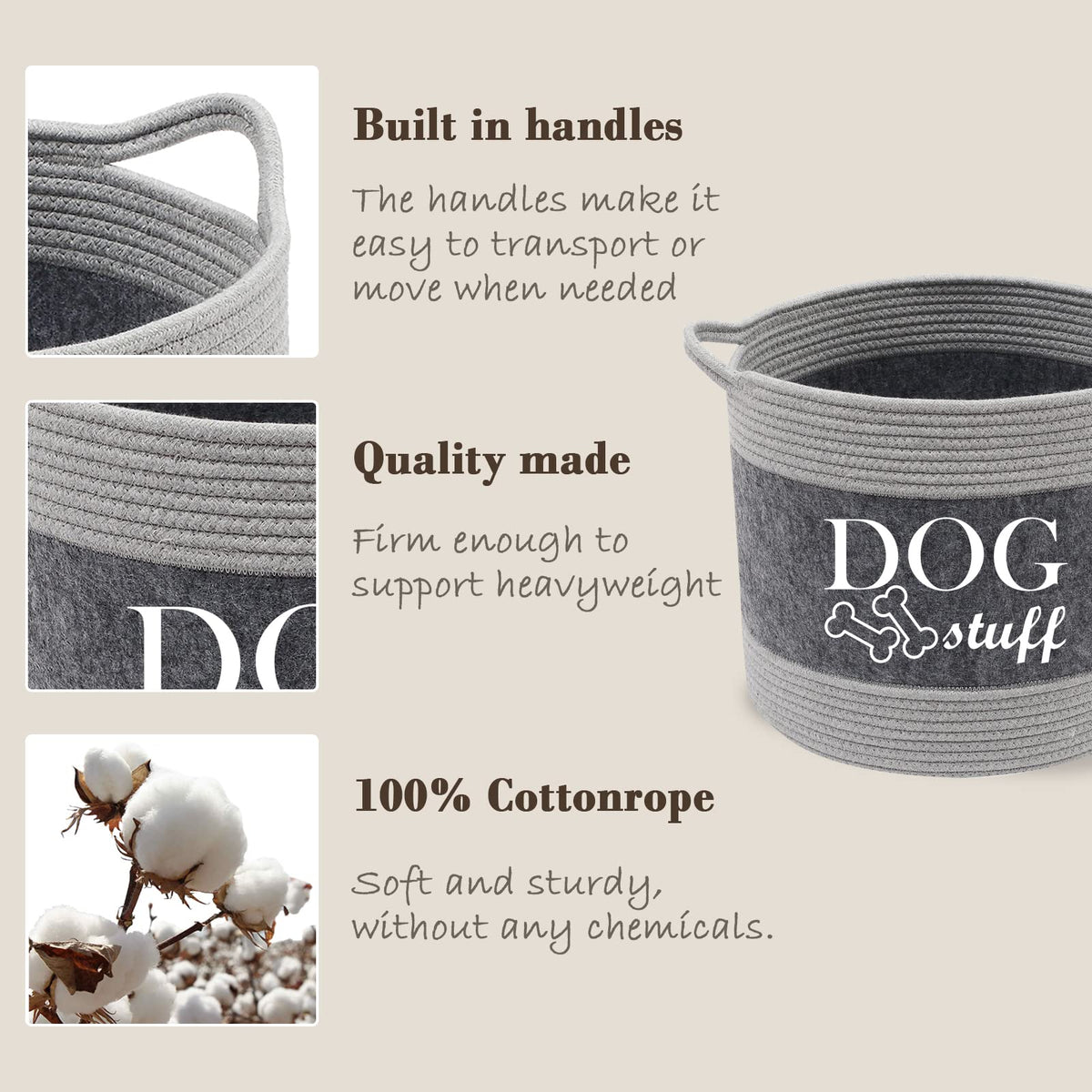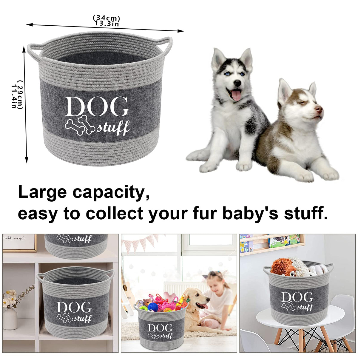 Functionalty: 1. This baskets for dog toys perfect for organizing holding dry dog treats, leashes, collars, toys, blankets, coat, ropes, dog chew toys and more. 2. You truly never see such a beautiful mix of function and fashion. 3. The grey allows this set to fit in within any decor or any room in the house and keeping your living area clean and clutter free. 4. Toy basket is made from cotton rope felt, lightweight with handles. 5. These beautiful containers will bring a smile to your face every time you see it - and your pets will go wild for them: although that may not necessarily be because of how beautiful they are. 7. Just the right sizes! Large enough to fit a nice amount of toys - but not so big or bulky as to take up too much space. These dog toy containers are seriously beautiful. Material: Cotton rope felt The item including: 1 x dog toy chest: 13'' Dia * 11'' High (34CM Dia * 29CM High) About Morezi Morezi brand is a company specialized in pet supplies. With the high quality of workmanships and materials, we hope that pet owners and pets will enjoy a leisure time. We will try our best to improve our services, as customer satisfaction is at the core of our business.