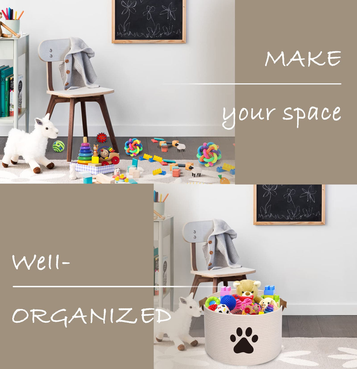 Morezi Dog Toy Bin Pet Cat Toy Box Baskets In Large Suff Storage - Perfect For Collect Toys, Grooming Stuff, Closthing, Diapers For Living Room, Playroom, Closet, Home - Beige