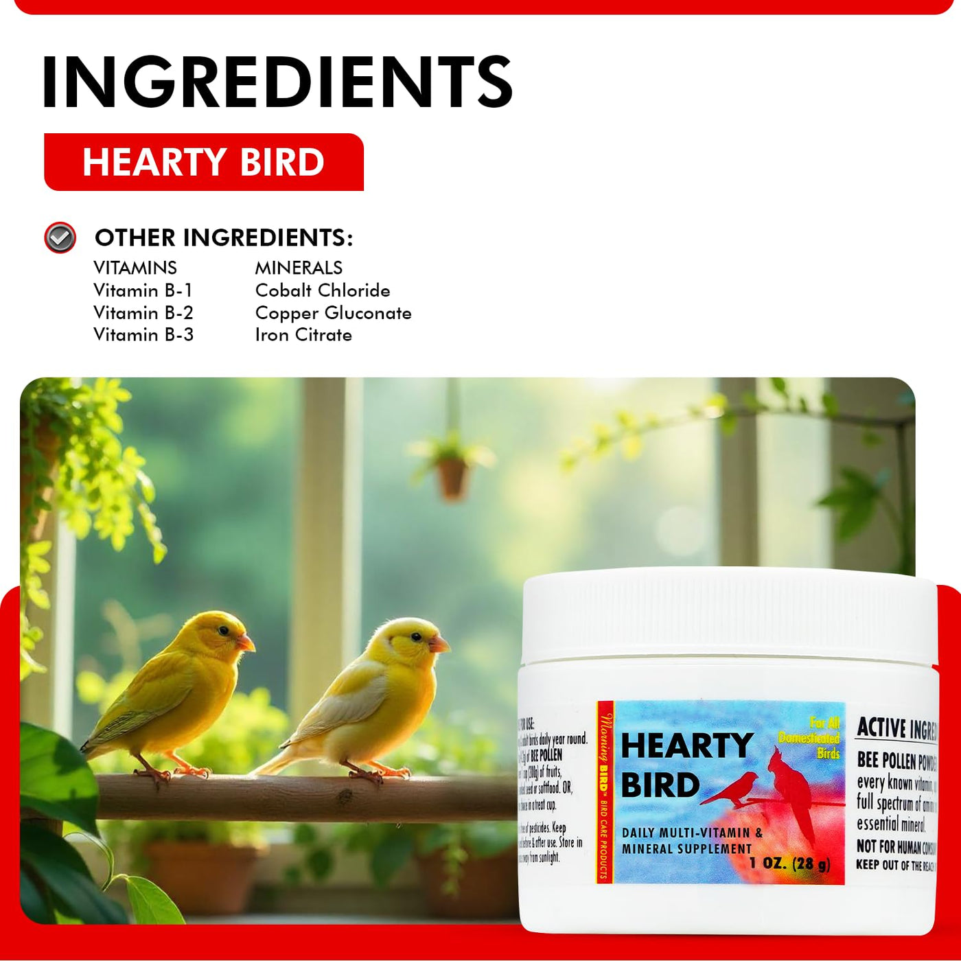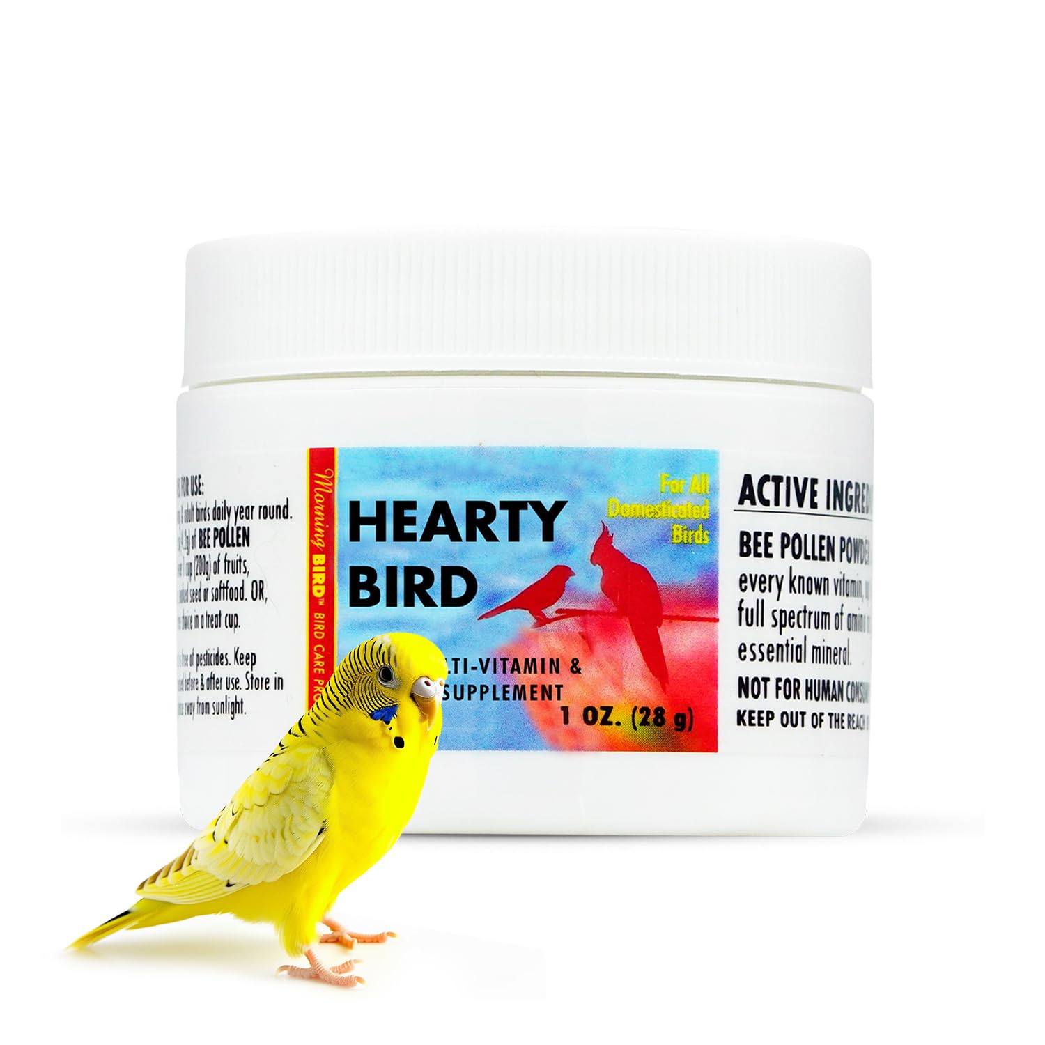 Support your birds well-being with Morning Bird Hearty Bird, a powerful daily blend of vitamins and minerals that promote long-term vitality. Its the ideal nutritional partner for birds needing a boost in energy, feather quality and overall superfood powder support. Formulated to mix effortlessly with water, it delivers consistent nutrition without disrupting routine. Whether used alongside cuttlebone for birds or as a standalone boost, this supplement helps maintain internal balance, especially during periods of stress or change. Essential nutrients like vitamins A, D3, E, and C, plus minerals like zinc and magnesium work together to enhance immunity and boost energy. Its the perfect daily energy powder for pet birds, especially when paired with a high-quality diet. Gentle Yet Effective for Daily Use Safe for long-term use and gentle on digestion. Formulated without fillers, pesticides or harsh additives so birds get only what they need nothing more, nothing less. Works great alongside a probiotic supplement for digestive and immune balance. Made for Consistent Wellness Support Designed to be used every day, year-round, to help maintain energy levels, natural activity and resilience against everyday stressors. An ideal complement to a daily vitamin regimen for birds that need steady, reliable care. From liver health supplement aid to strong immunity and metabolism, Morning Birds daily multivitamin powder helps your bird thrive. The perfect immunity boost without the hassle.