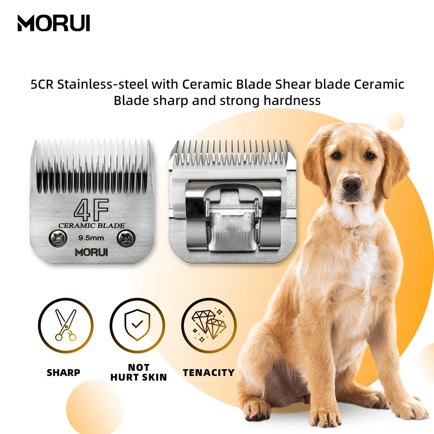 Morui 4F Cut Length 3/8'(9.5Mm) Detachable Ceramic Pet Dog Clipper Blades Compatible With Most Andis,Oster A5 Wahl Km Series Cl