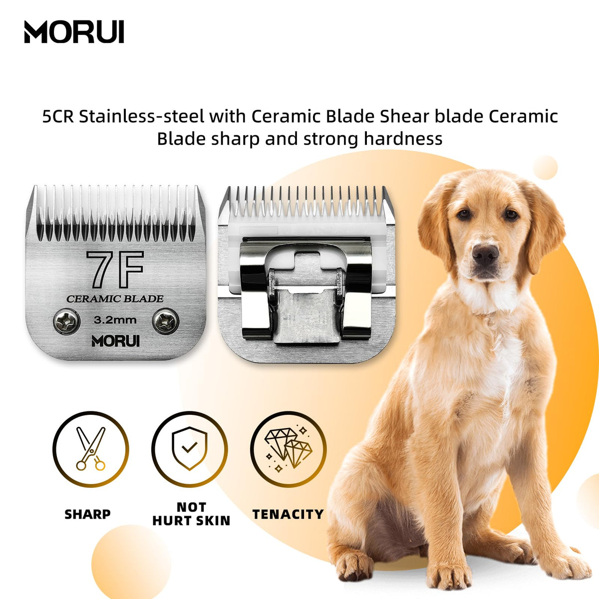 Morui 7F Cut Length 1/8''(3.2Mm) Detachable Ceramic Pet Dog Clipper Blades Compatible With Most Andis,Oster A5 Wahl Km Series Cl