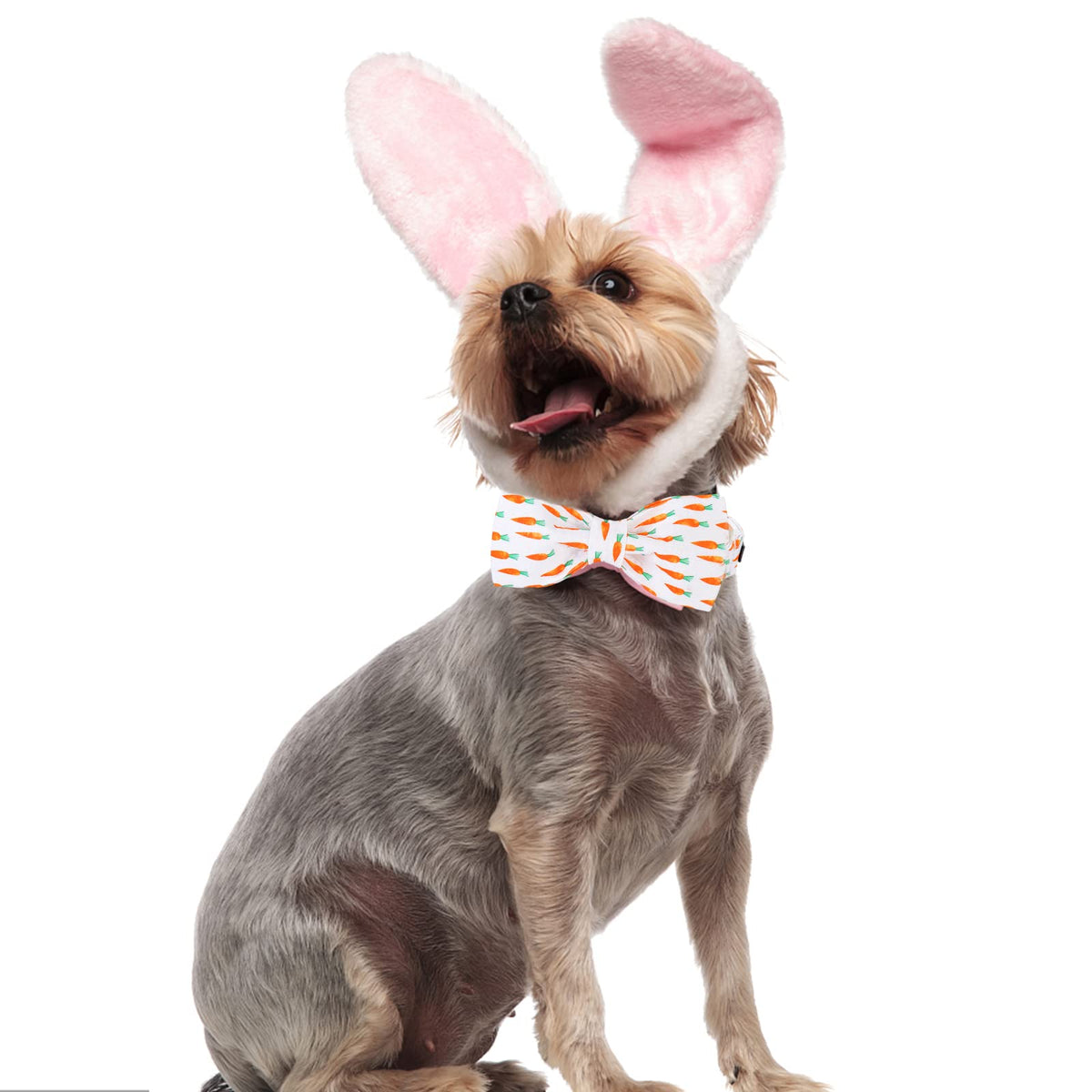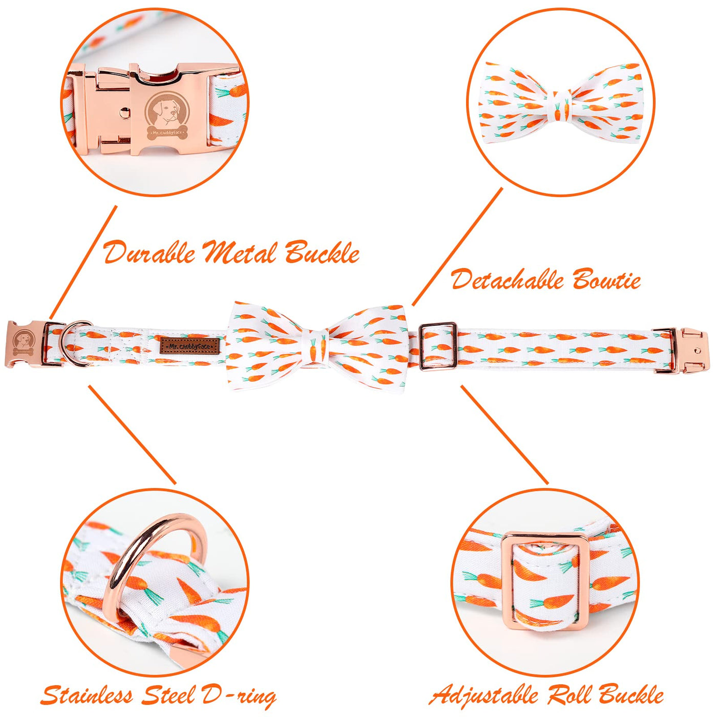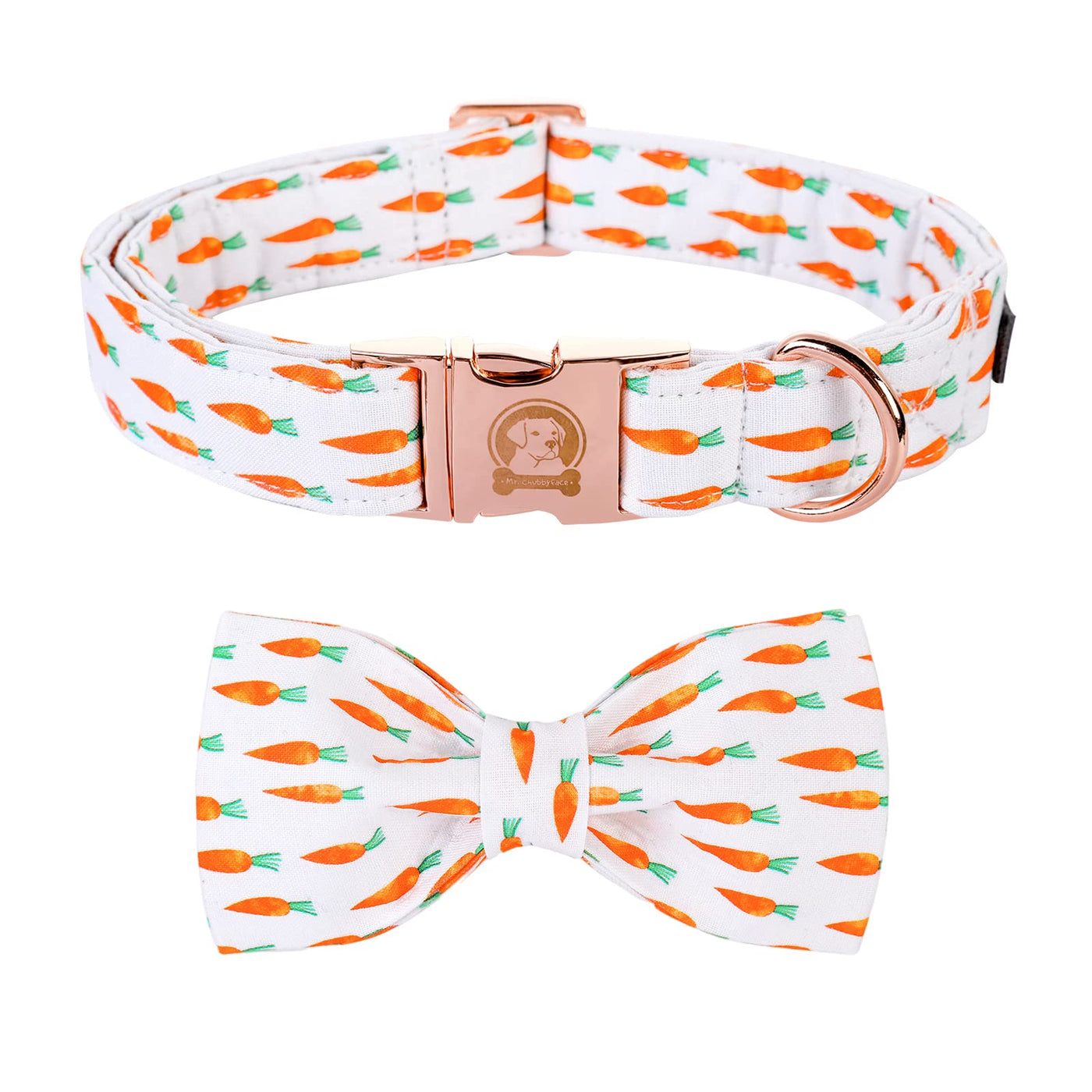 Mr.Chubbyface Orange Dog Easter Collar With Bow, Soft Cotton & Metal Buckle, Adjustable Size L, Gps Tracking, Unisex, Medium Bre