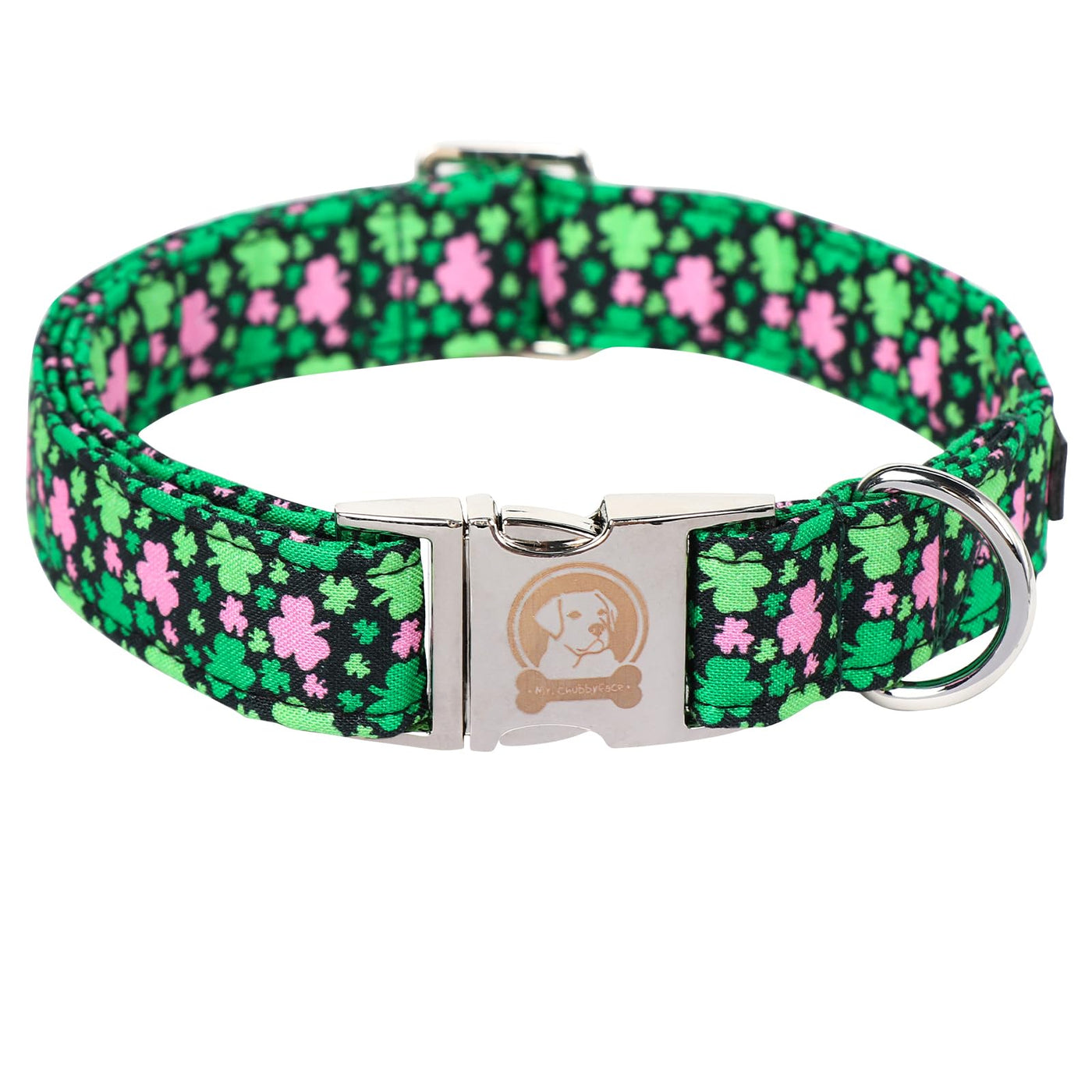 Mr. Chubbyface St.Patrick'S Clover Dog Collar, Green Clovers Shamrock Adjustable Dog Collar, Cute St.Patrick'S Collar For Small