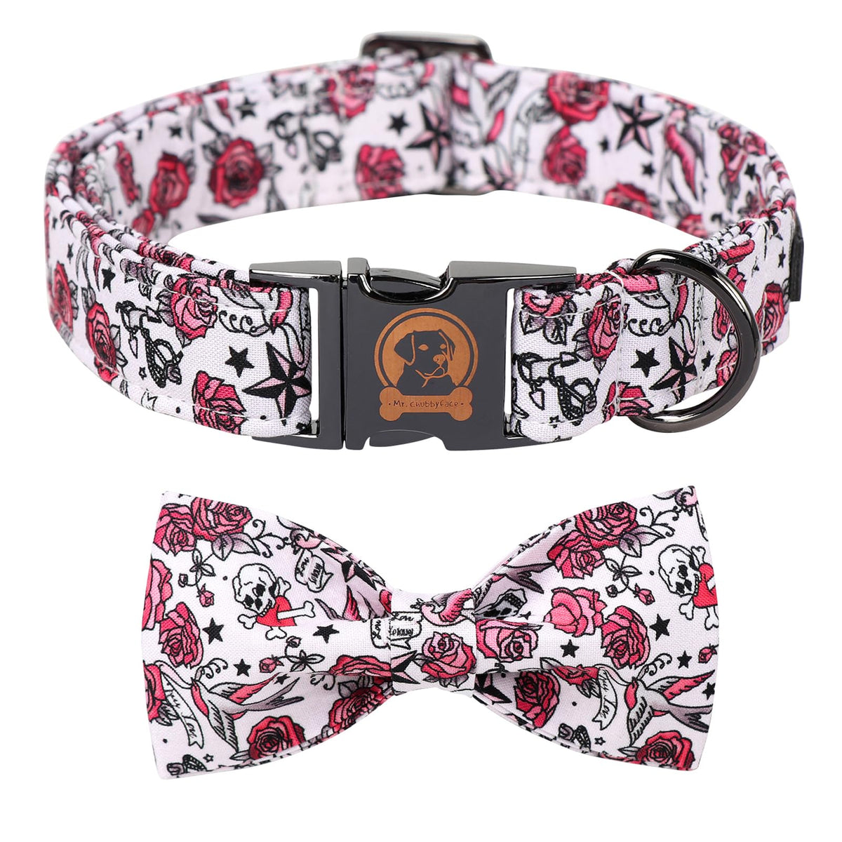 Mr. Chubbyface Valentine'S Dog Collar With Bow Tie-Cute Pink Rose Cotton Dog Collar, Adjustable Valentine'S Boy Girl Dog Collars