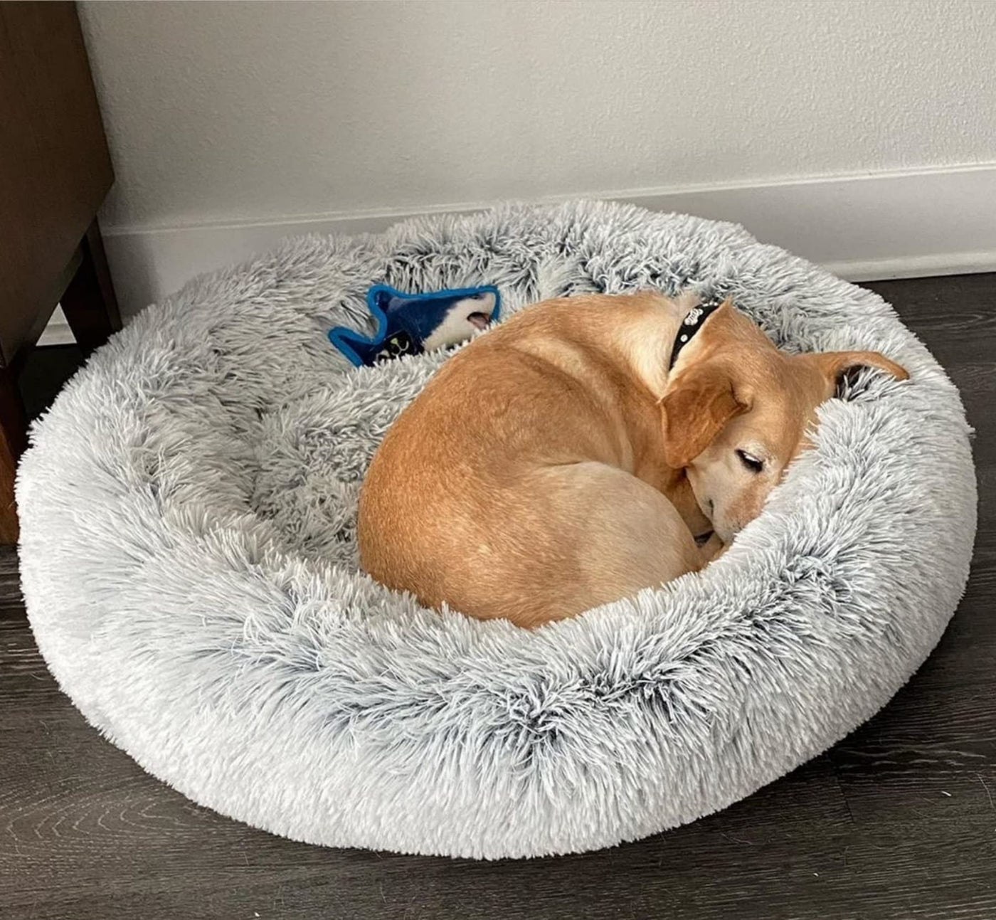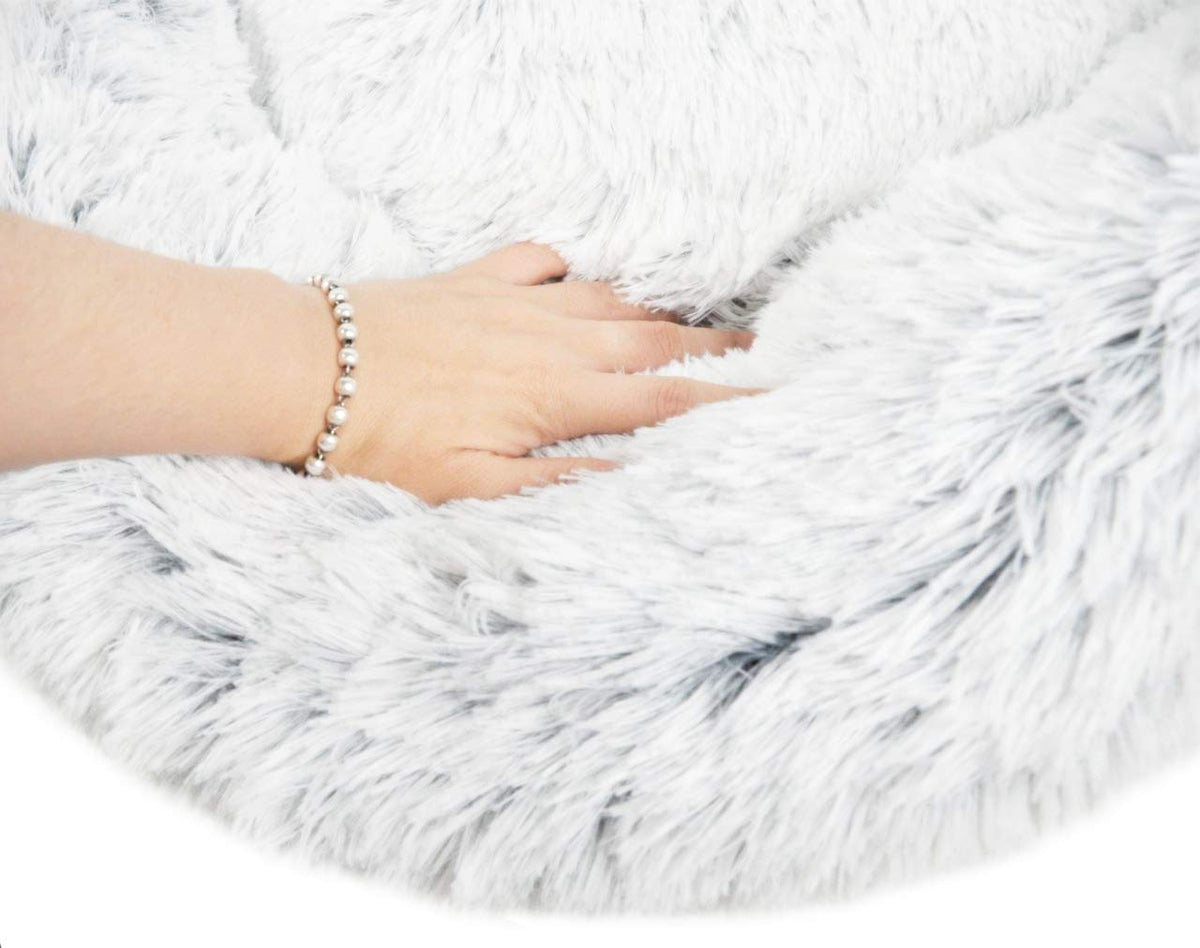 Mr. Peanut'S Orthoplush Two Tone Extra Fluff Faux Fur Donut Pet Bed (Medium, Snowflake)