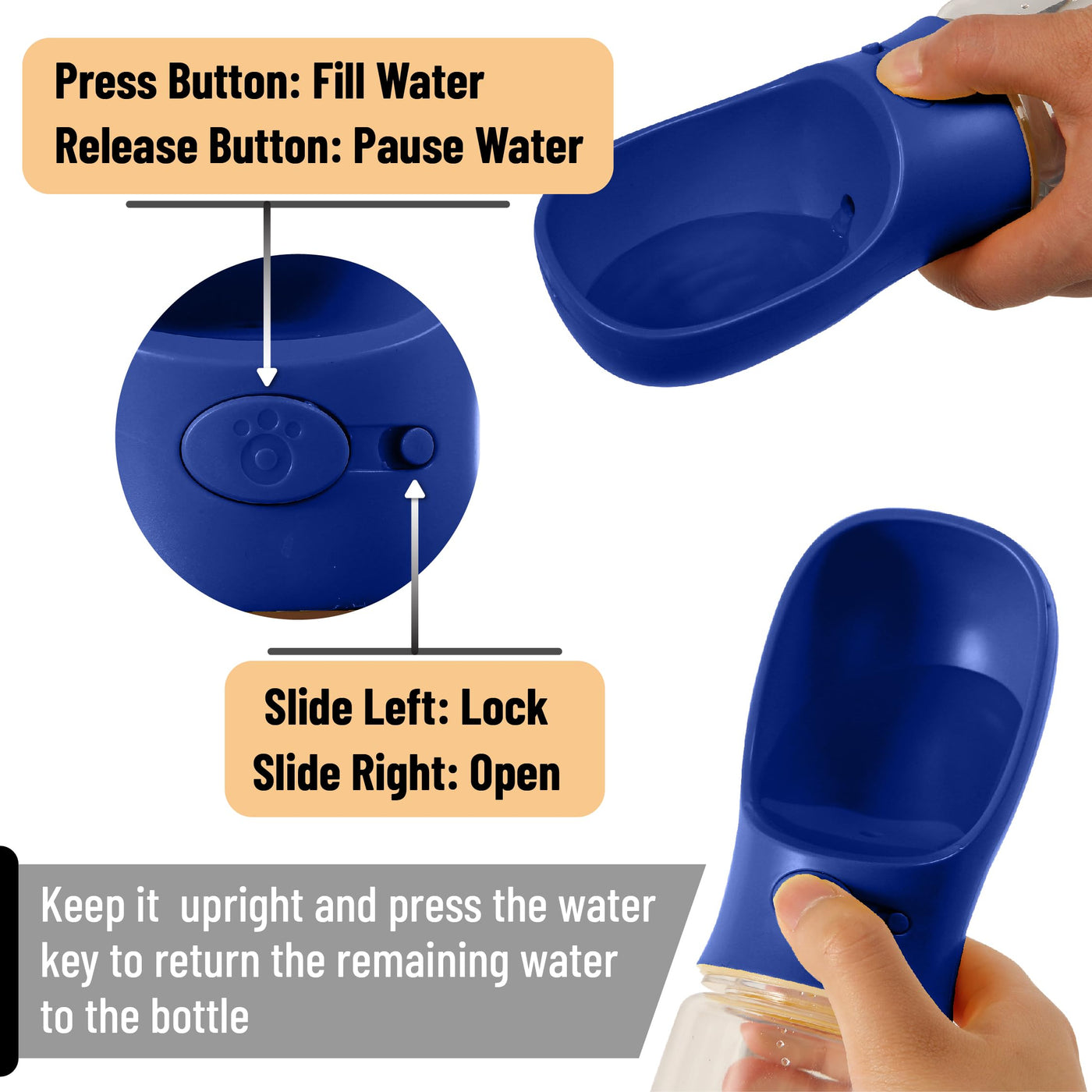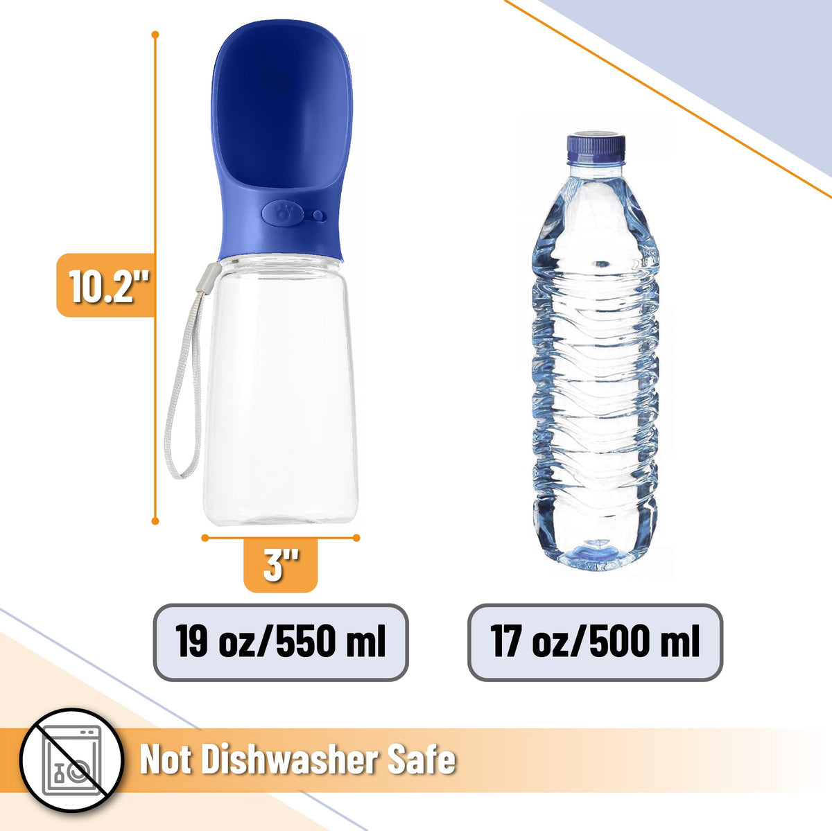 Mr. Pen- Dog Water Bottle, 19 oz, Large, Navy Blue, Portable Dog Water Bottle Dispenser, Dog Travel Water Bottle, Travel Dog Wat