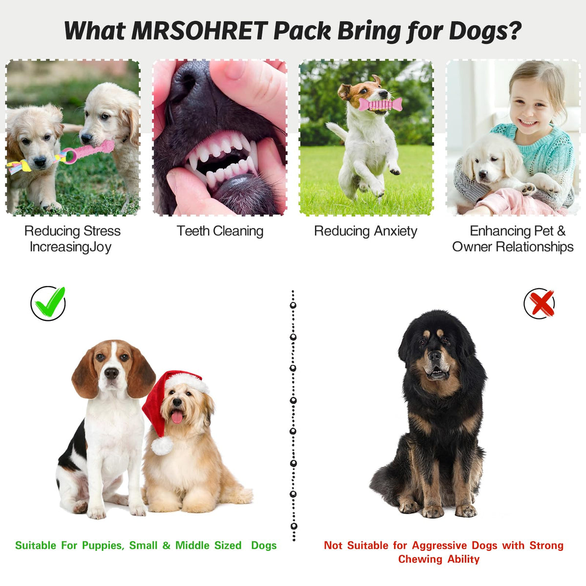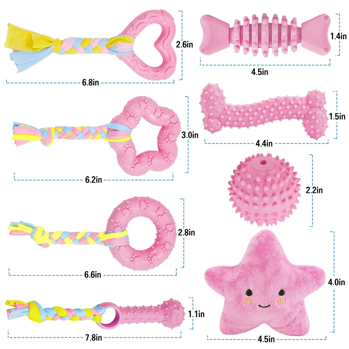 MRSOHRET Puppy Toys, 8 Pack Puppy Chew Toys for Teething, Cute Pink Small Dog Toys Set, Teething Toys for Puppies, Soft Durable
