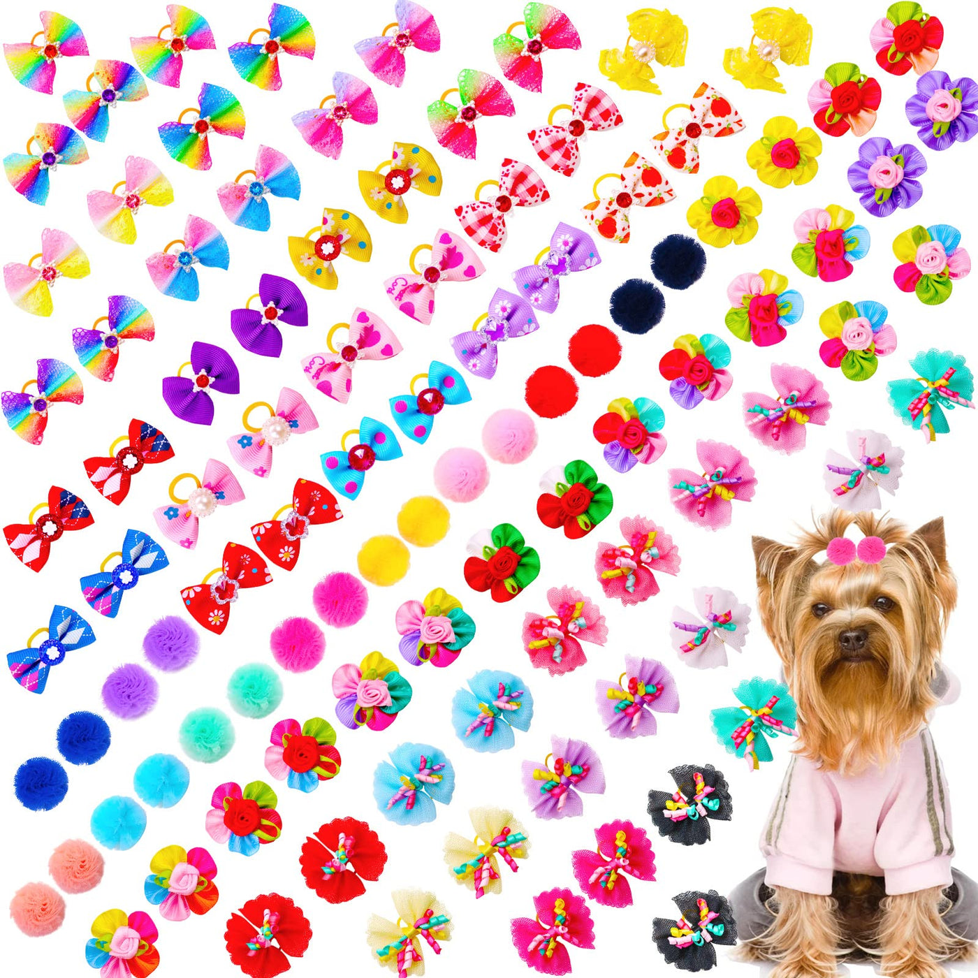 Happy Dog! Have A Happy Day With Your Cute Pet Dog!Please Believe 'Mruq Pet''. ''Mruq Pet'' Product Is Committed To The Development And Design Of New Pet Dog Hair Bows Accessories To Provide Your Pets With More Dog Bows Styles To Choose From.Package Includes: 100Pcs Rhinestone/Pearls/Flower/Ball/Ribbons/Lace Small Dog Hair Bowssize: Mix Mini Sizenew Design Style: Multicolor Stylewhy Do Dogs Wear Bows?Some Dog Owners Will Dress Up Pets For The Holidays And Have A Good Time Together.Some Pet Owners Try To Make Their Pets Look More Friendly And Cute.The Dog Bows With Rubber Bands Make Your Pet The Center Of Attention On Daily,Its An Interesting Decoration For Your Pet On Weddings, Parties And Other Cheerful Occasions, Is Suitable For Dogs, Cats, Pigs And Other Small Cute Animals To Make Themselves Be Popular In The Crowd.Practical Gifts:No Matter Walking Outside, Participate Wedding, Competition Or Holiday Party, You Can Dress Up Your Pet With The Dog Grooming Bows. A Good Birthday Gift To Families Or Friends Who Keep Pets.The Diverse Styles Of Dog Bow Ties For Small And Medium Dogs Can Give Your Pets An Attractive Looking Without Repetition For Days. Small Dogs Include Yorkie, Poodle, Pomeranian, Bichon, Schnauzer, Shih Tzu, Maltese, Pug, Chihuahuas, Papillons Etc.For Dog Hair Accessories, Please Look At The ''Mruq Pet'' Pet Store, We Will Develop More Products, So Stay Tuned!