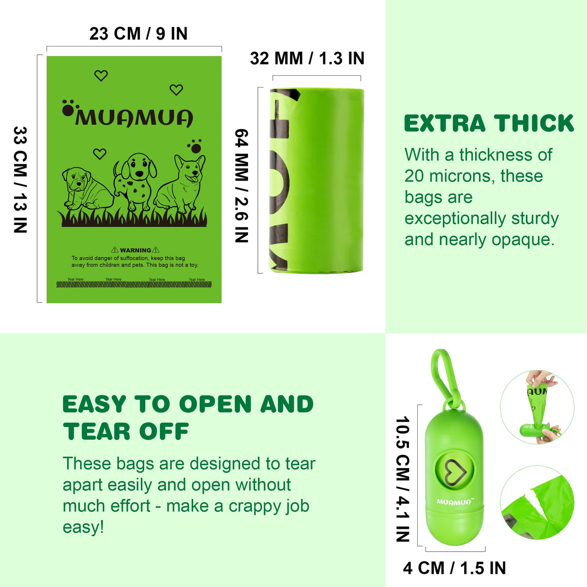 Muamua Dog Bags 570 Counts With Dispenser And Leash Clip, Unscented Dog Poop Waste Bags, Extra Thick, Leak Proof Doggie Refill Bags For Poop, Ideal For Puppy Walk Travel, 9' X 13' (Green) Dog Bags For Poop Dog Poop Bags Dog Poop Bags Rolls Dog Waste Bags Pet Bag Dog Poop Bag Dog Poop Bag Big Size Poop Bag Dispenser