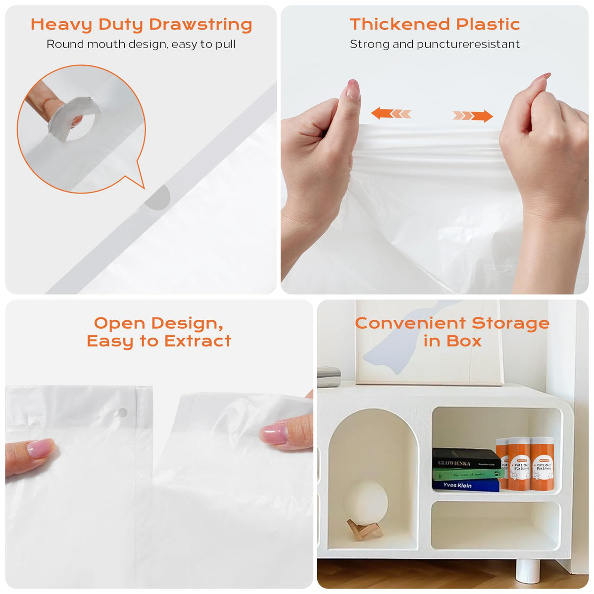 Versatile Options For Every Preference: Our Cat Litter Box Liners Come In Both Box-Packed And Roll-Type Variations, Catering To Your Unique Needs And Preferences For Effortless Maintenance. Effortless Maintenance With Premium Materials: Crafted From Durable, Tear-Resistant Materials, These Liners Ensure A Leak-Proof And Pristine Litter Box Environment, Making Daily Care A Breeze. Hassle-Free Drawstring Closure For Easy Cleanup: Featuring A Secure And Convenient Drawstring Closure, Simply Lift, Tie, And Dispose - Transforming Litter Box Maintenance Into A Quick And Mess-Free Task. Universal Fit For Seamless Convenience: Our Jumbo-Sized Liners Fit Nearly All Traditional (Open-Style) Litter Boxes, Providing A Versatile Solution That Adapts To Your Growing Cats Needs Without Compromising On Ease Of Use. Designed For Your Convenience: Whether You'Re Looking For A Quick And Easy Solution Or A More Sustainable Option With Our Roll-Type Liners, We'Ve Got You Covered With Designs Tailored For Your Convenience.