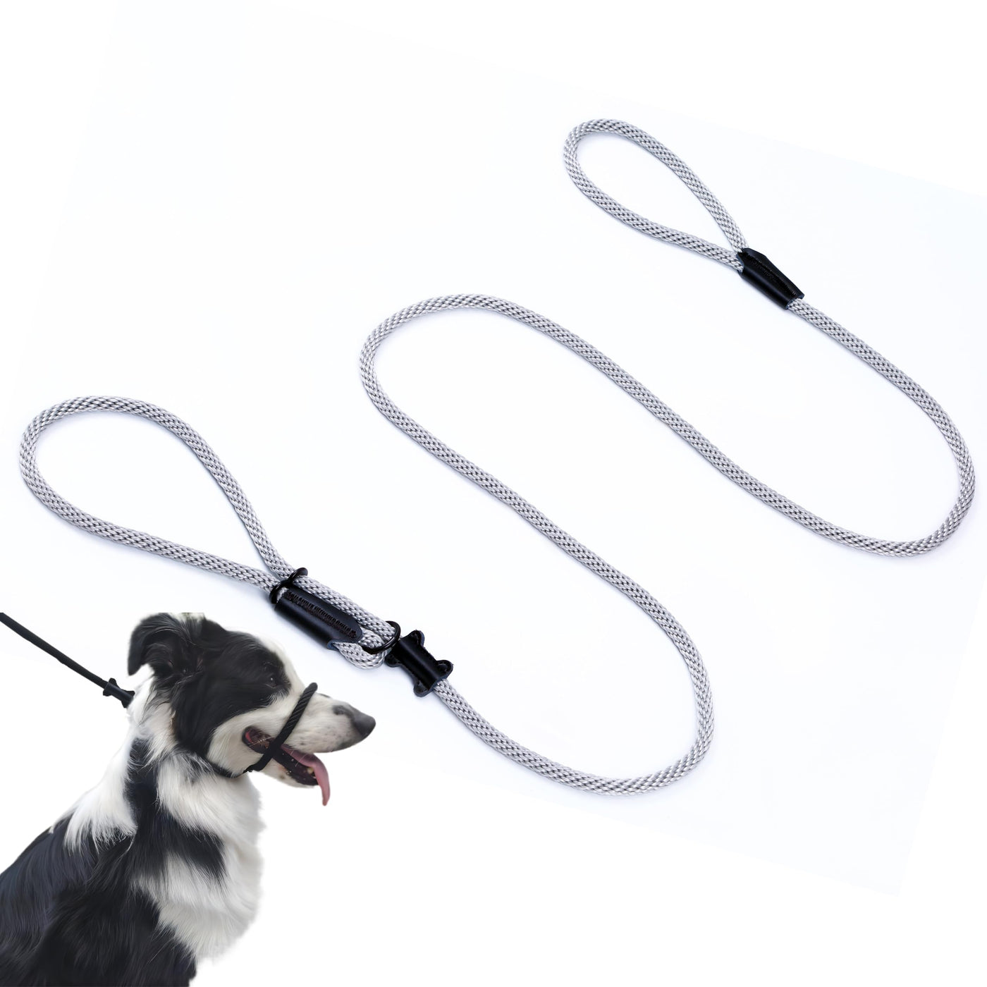 Multifunctional Figure 8 Padded Head Halter Walking Training Leather Stopper Rope Slip Lead Dog Leash Muzzle (Grey)