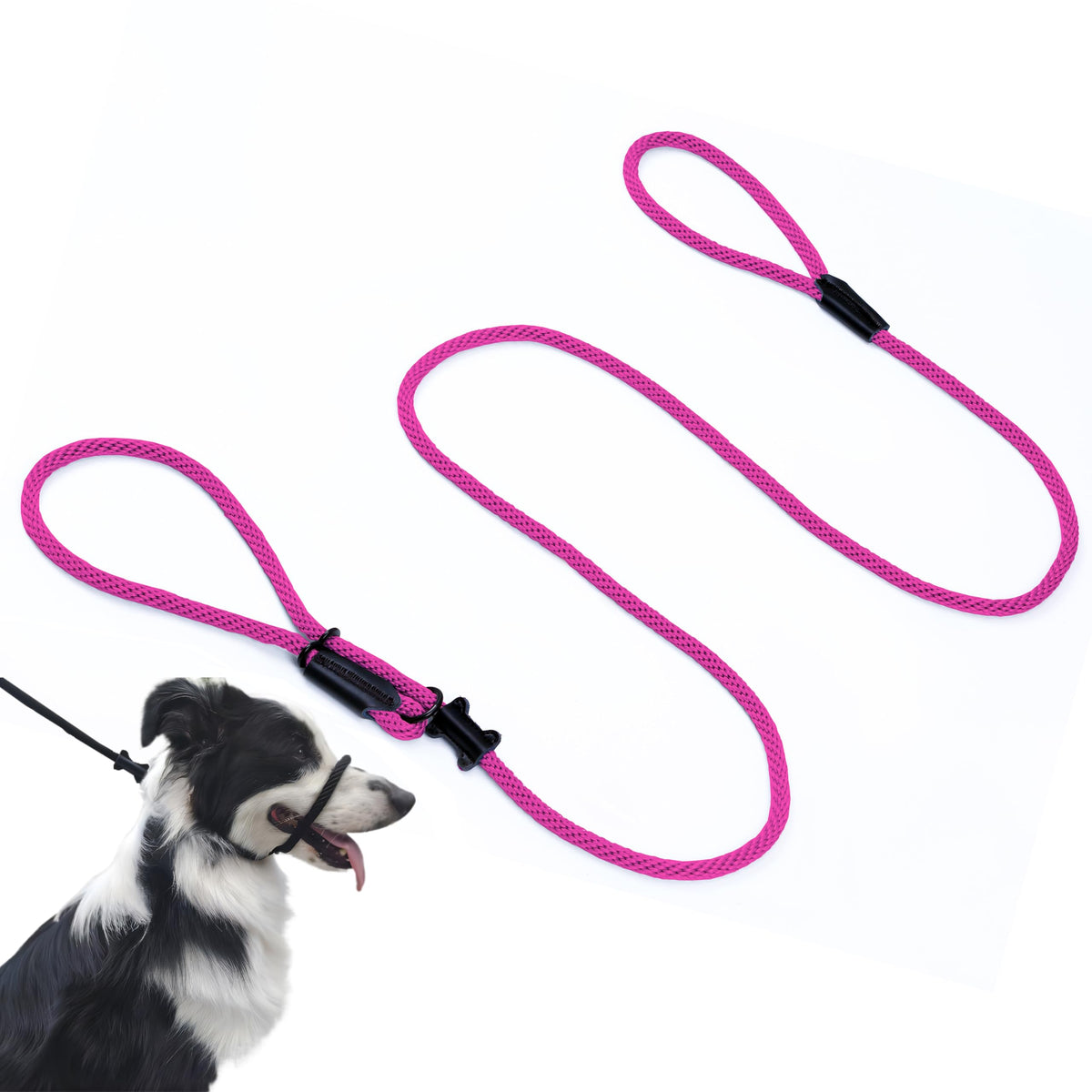 Multifunctional Figure 8 Padded Head Halter Walking Training Leather Stopper Slip Lead Dog Rope Leash (Hot Pink)